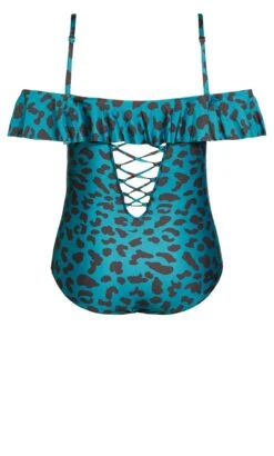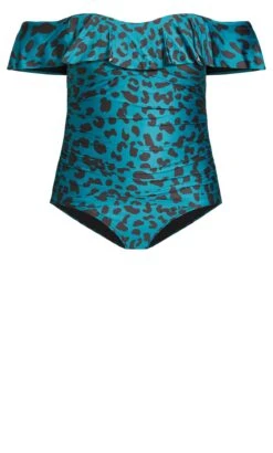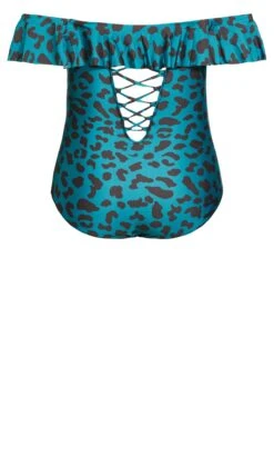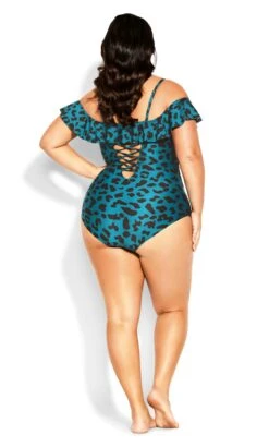 Unleash your wild side with City Chic’s Green Leopard Print Bardot Swimsuit. The captivating green leopard print meets a trendy Bardot neckline, offering a unique blend of style and confidence. Perfect for poolside lounging or beach days, this swimsuit effortlessly combines comfort and fashion, making it an essential addition to your swimwear collection for a bold and chic look.