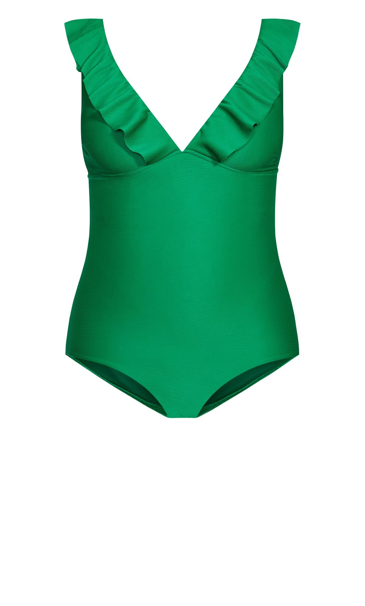 Make a splash with the City Chic Green Ribbed Swimsuit, featuring a playful frill neckline for a touch of elegance by the water. This swimsuit combines style and comfort with its vibrant green hue and ribbed texture, ensuring you’re beach-ready in both fashion and confidence. Elevate your swimwear collection with this chic choice, perfect for turning heads at the pool or beach.