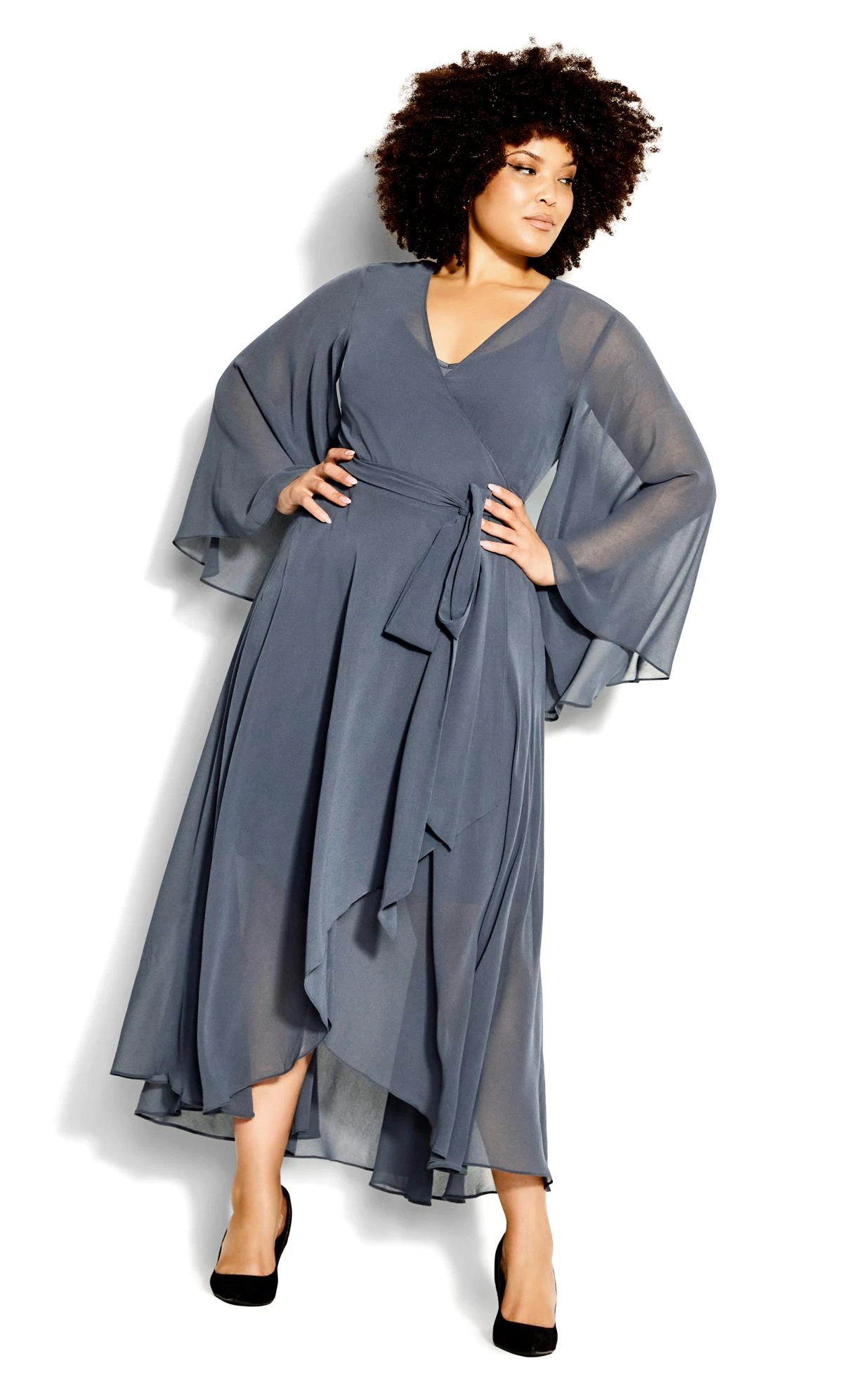 Be unforgettable at your next elegant event in the muted slate hue of our Fleetwood Maxi Dress. Featuring dramatic bell sleeves and a comfortable true wrap closure, this floaty maxi dress pulls out all the stops.