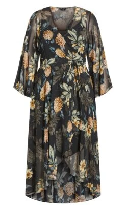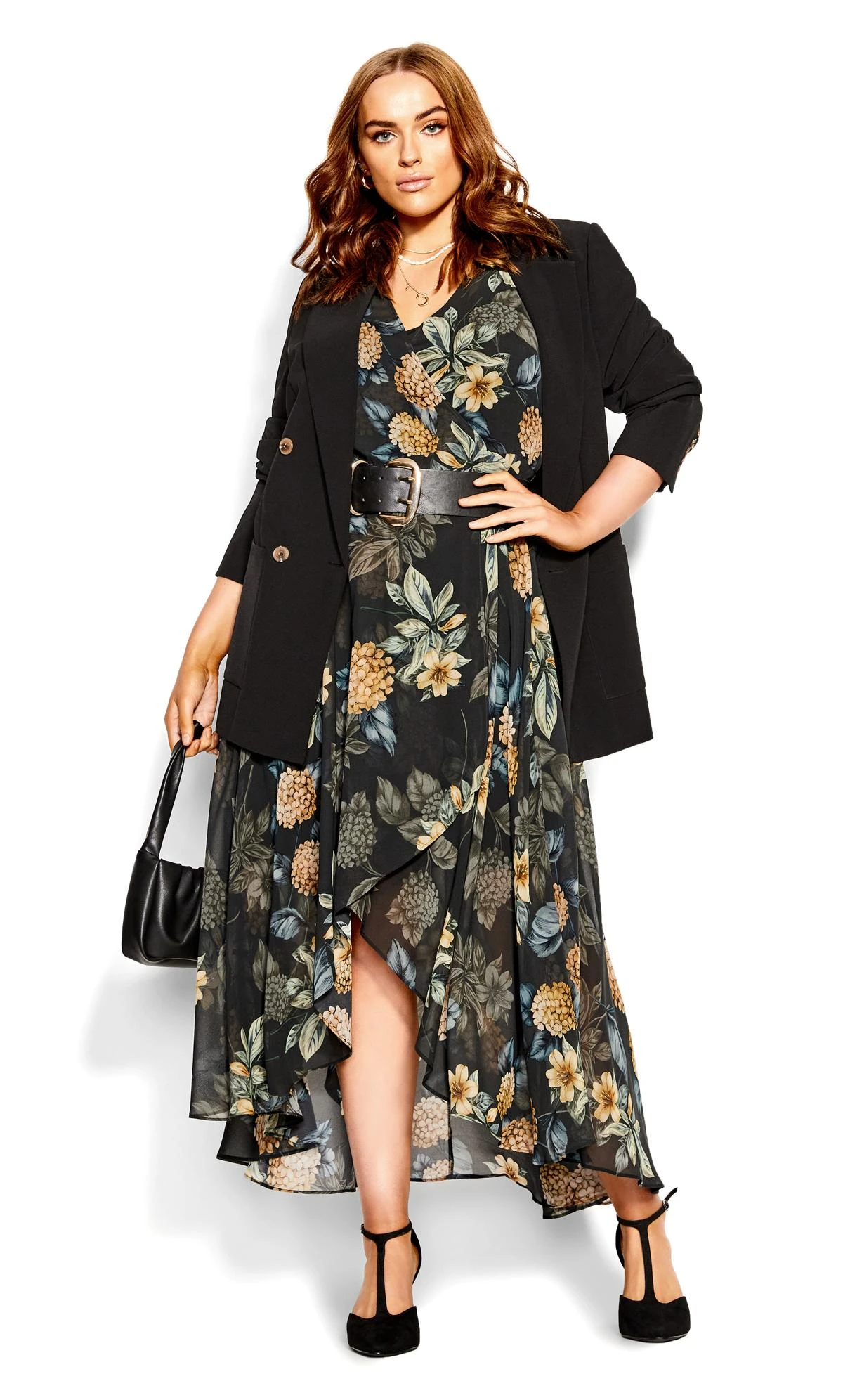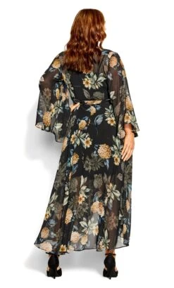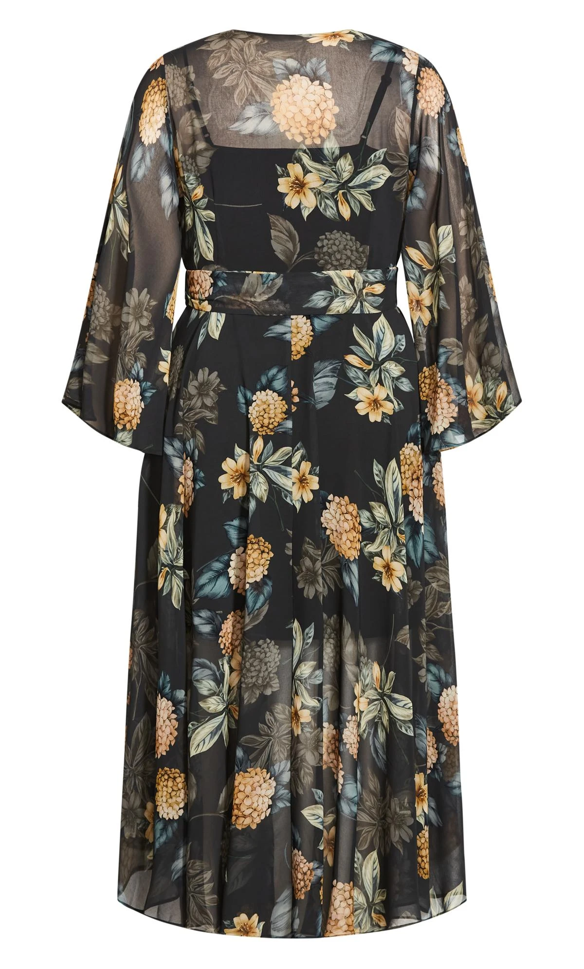 Fit and flatter your curves in the sensual Golden Hydrangea Maxi Dress. With a true wrap cut and heavenly flared sleeves, you’ll come back to the classic style time and time again.