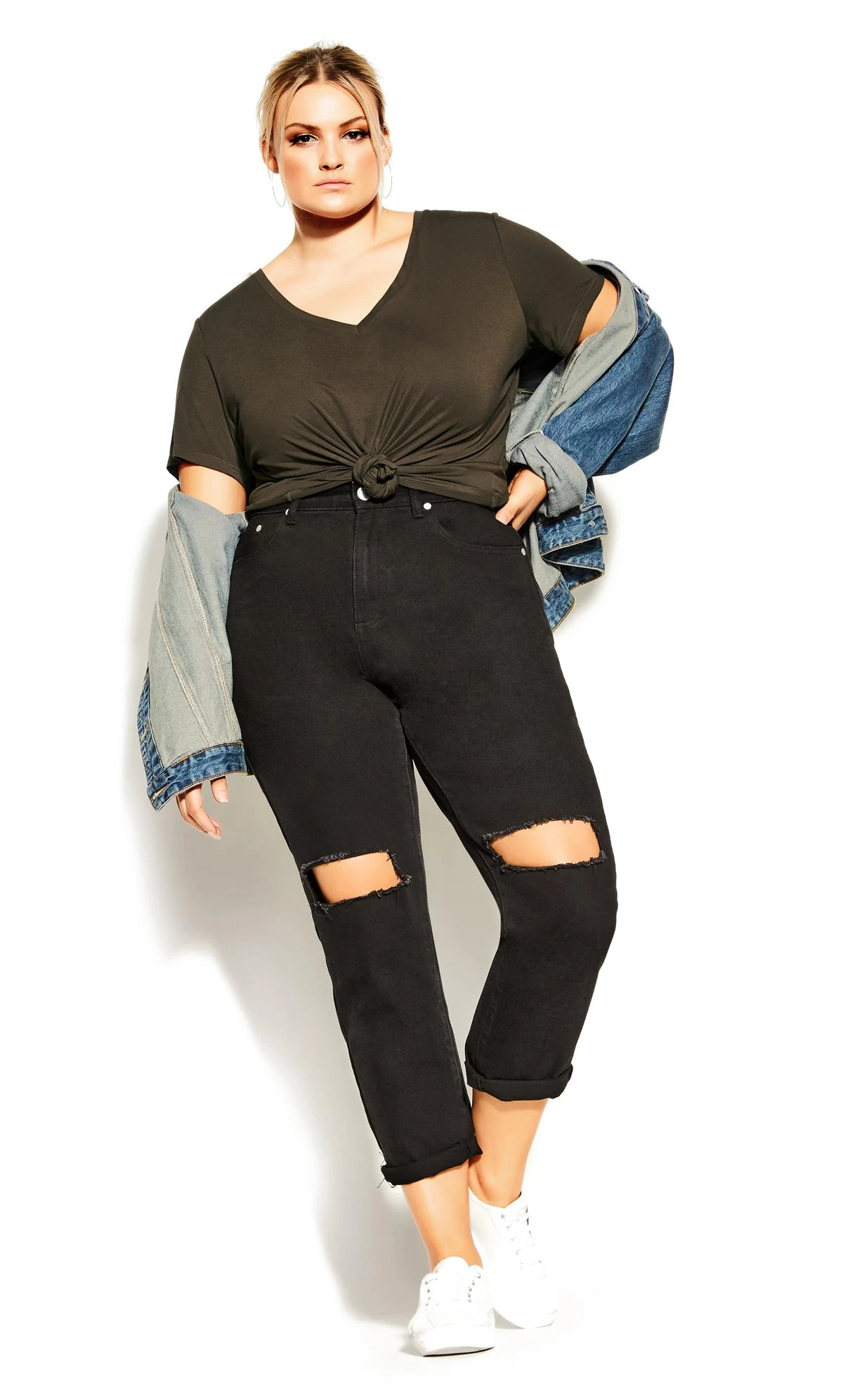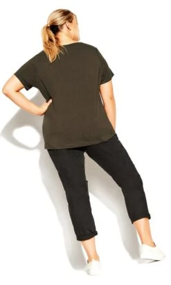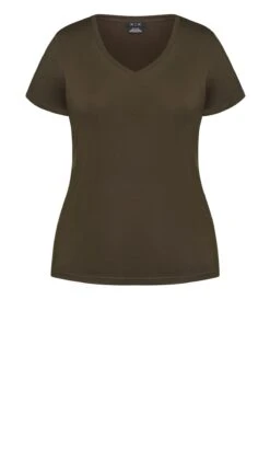 Elevate your casual style with the City Chic Khaki V-Neck T-Shirt. This t-shirt seamlessly combines comfort and modern design, featuring a classic khaki hue and a flattering v-neckline. The relaxed fit ensures easy wear, making it perfect for everyday outings or casual hangouts. Embrace effortless chic with this khaki v-neck t-shirt from City Chic that adds a touch of versatility and style to your everyday look.
