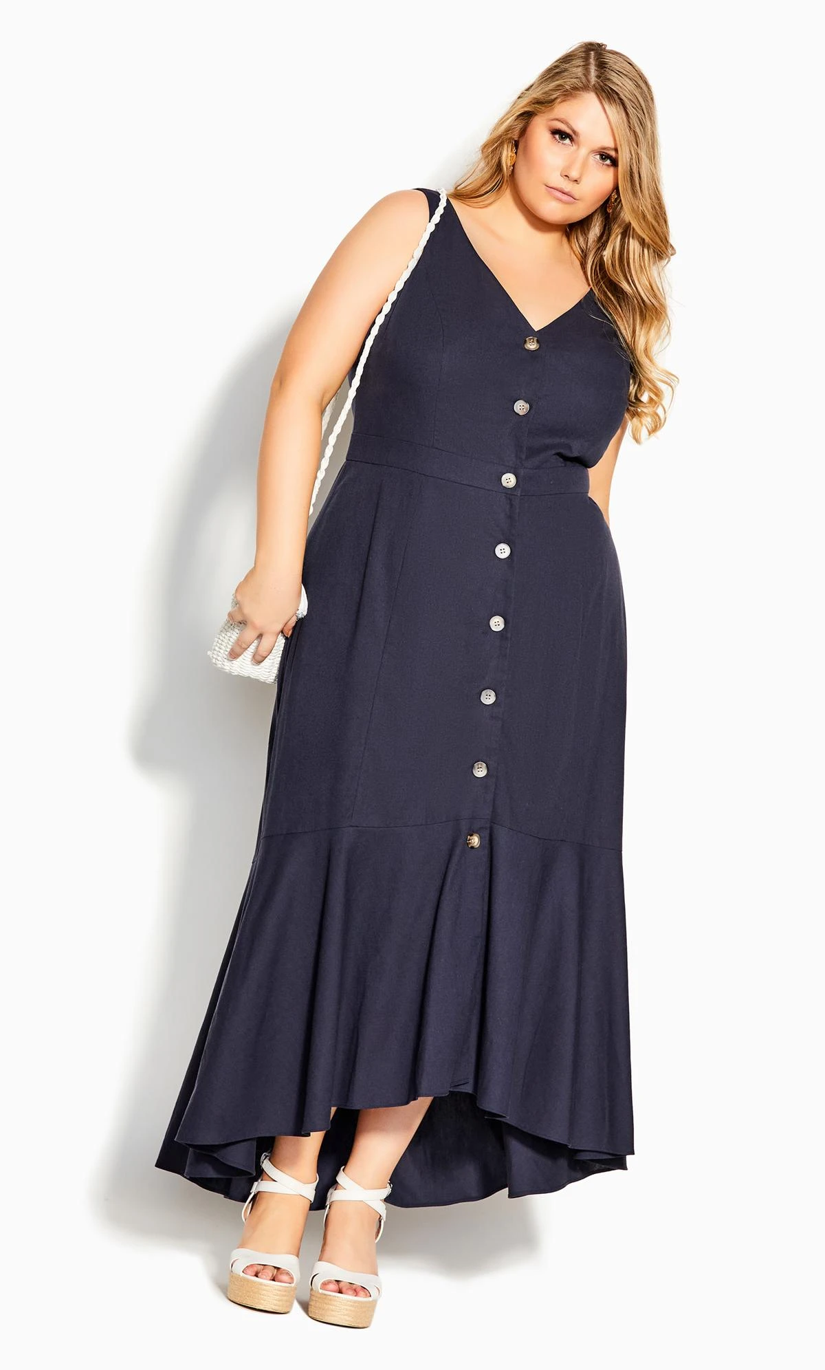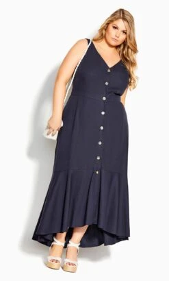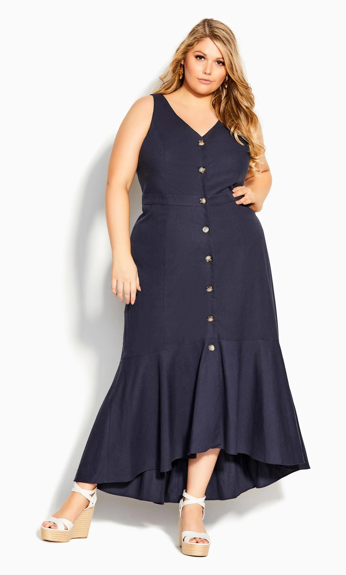 – Relaxed maxi length skirt with hi-lo ruffled hemline