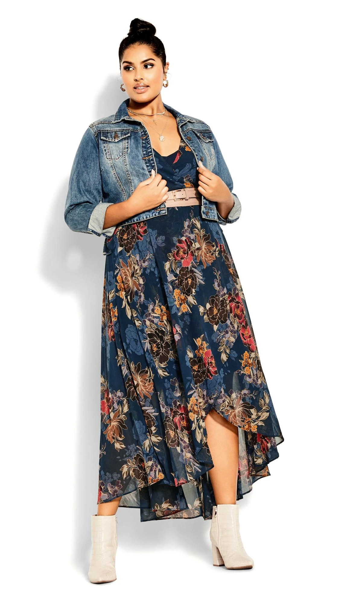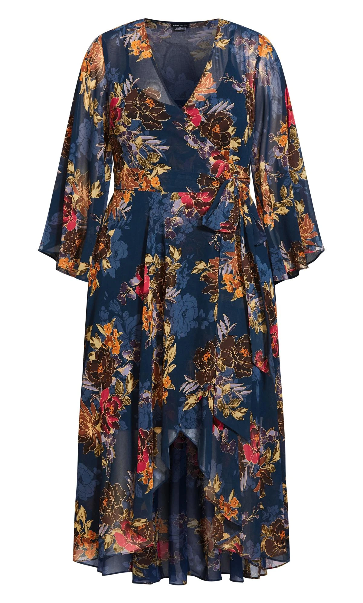 Embrace your curves with the draping flair of the Floral Twist Maxi Dress. With its stunning long flowing sleeves and true wrap silhouette, this dress is crafted with sheer chiffon fabrication and maxi wrap skirt hemline to highlight your shape.