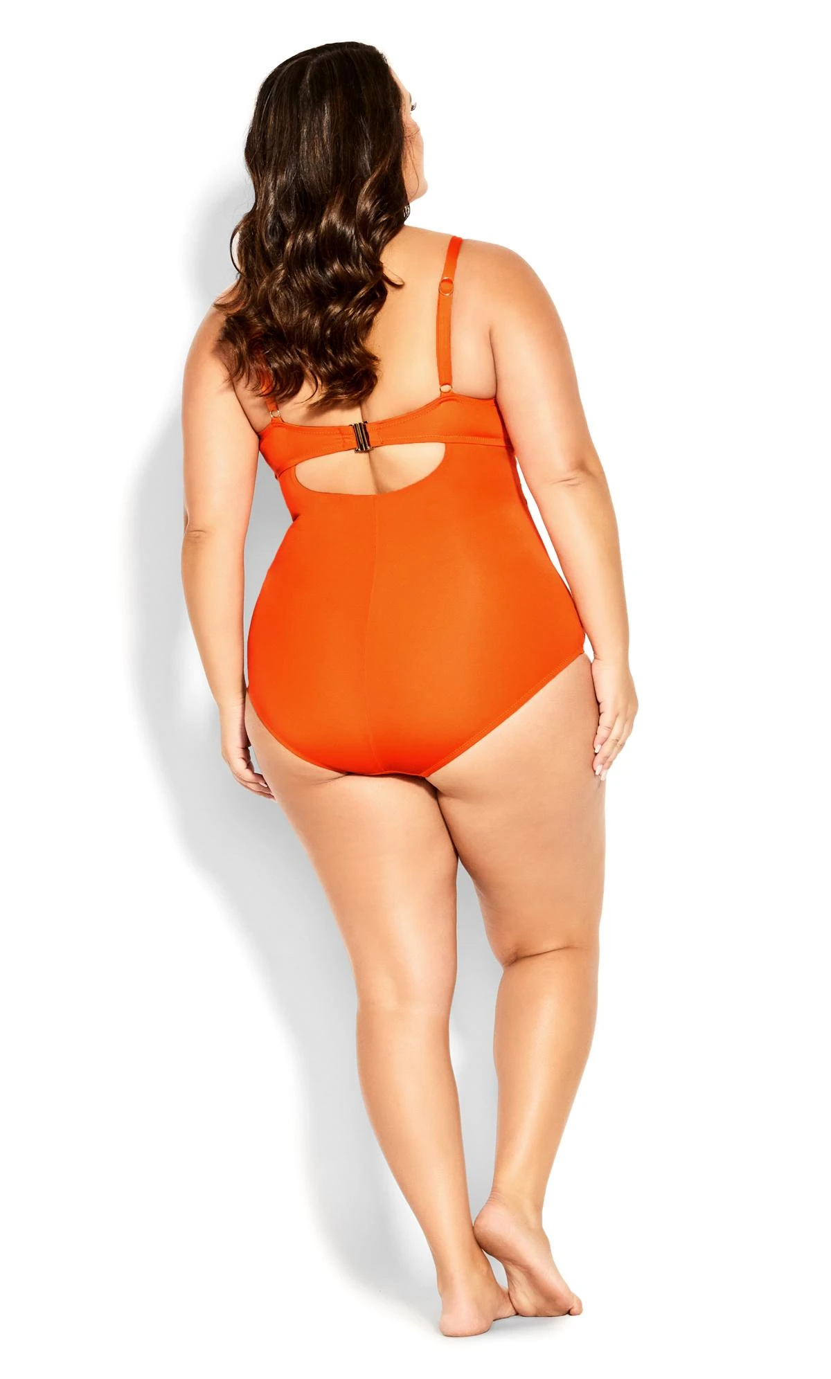 Make a vibrant statement at the beach or pool with City Chic’s Orange Cut Out Swimsuit. This swimsuit seamlessly blends style and allure, featuring a striking orange hue and chic cut-out detailing. Embrace both confidence and fashion with this essential swimwear piece that exudes both elegance and boldness.