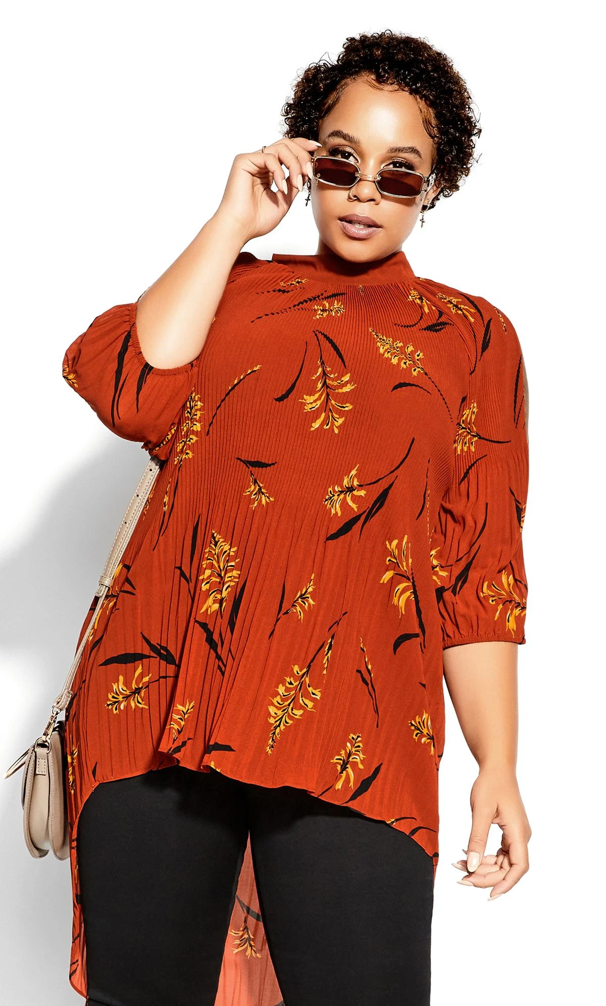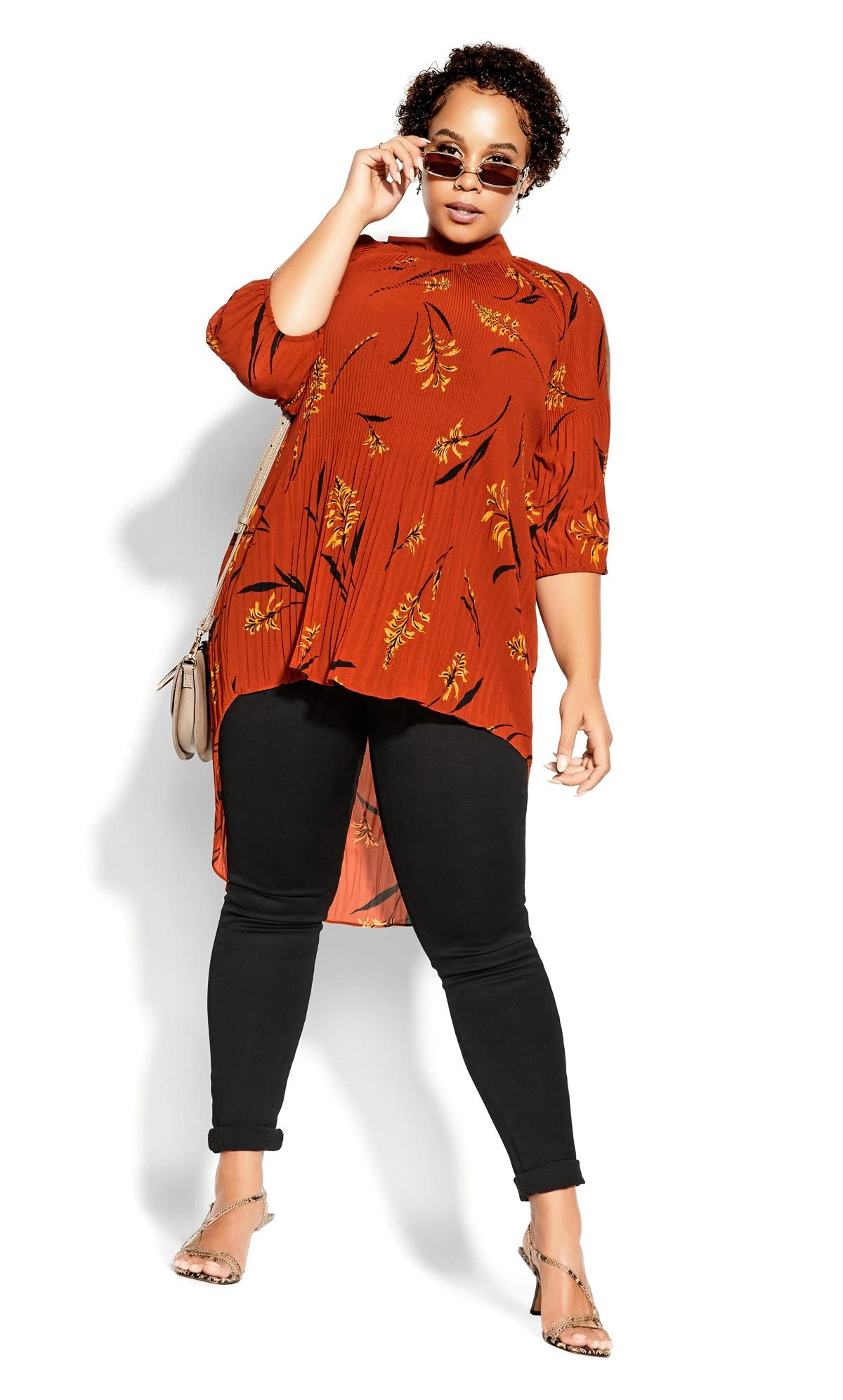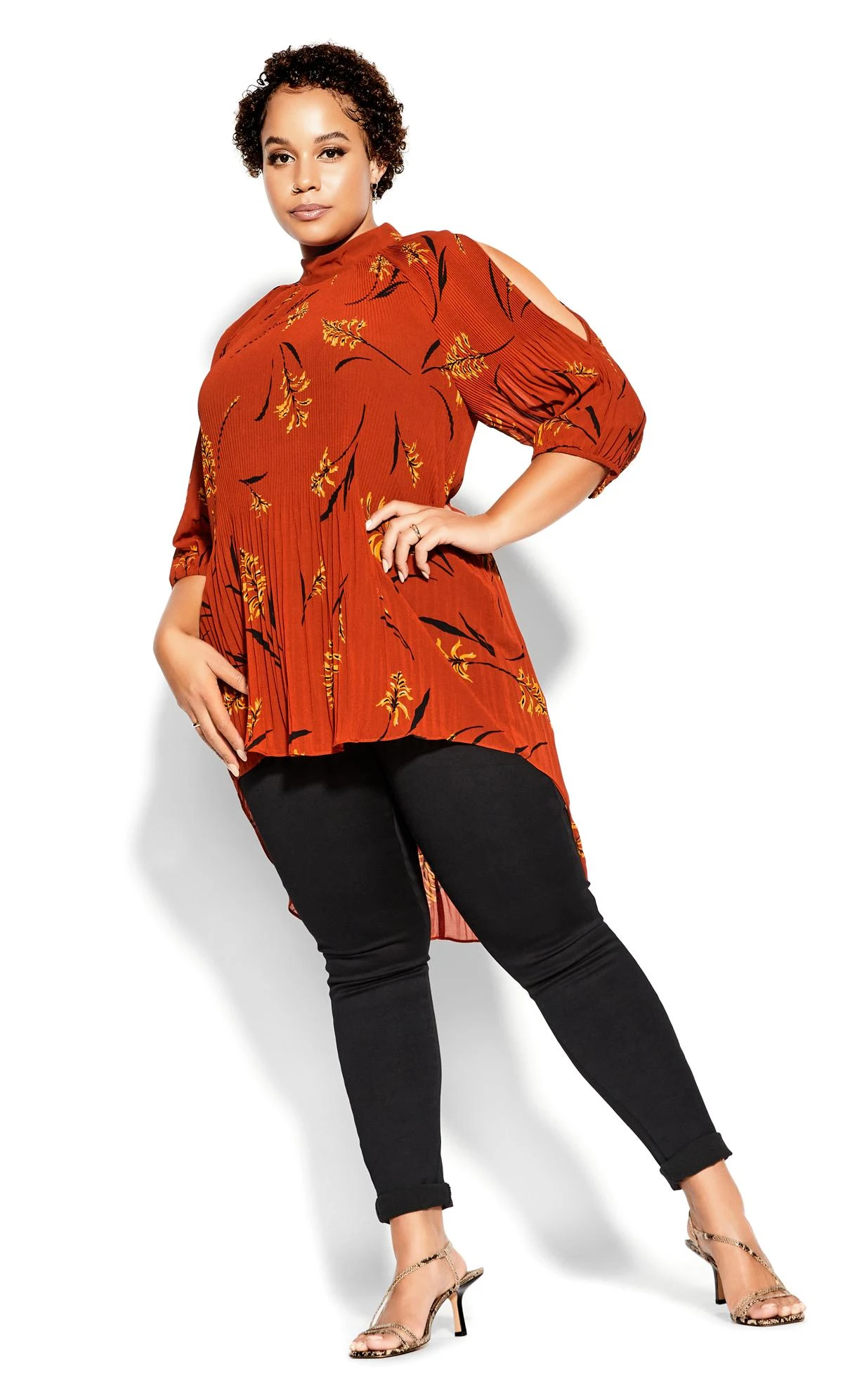 Pair this top with a plain black cami underneath and a pair of matching black skinny jeans for a laid-back but smart-casual finish.