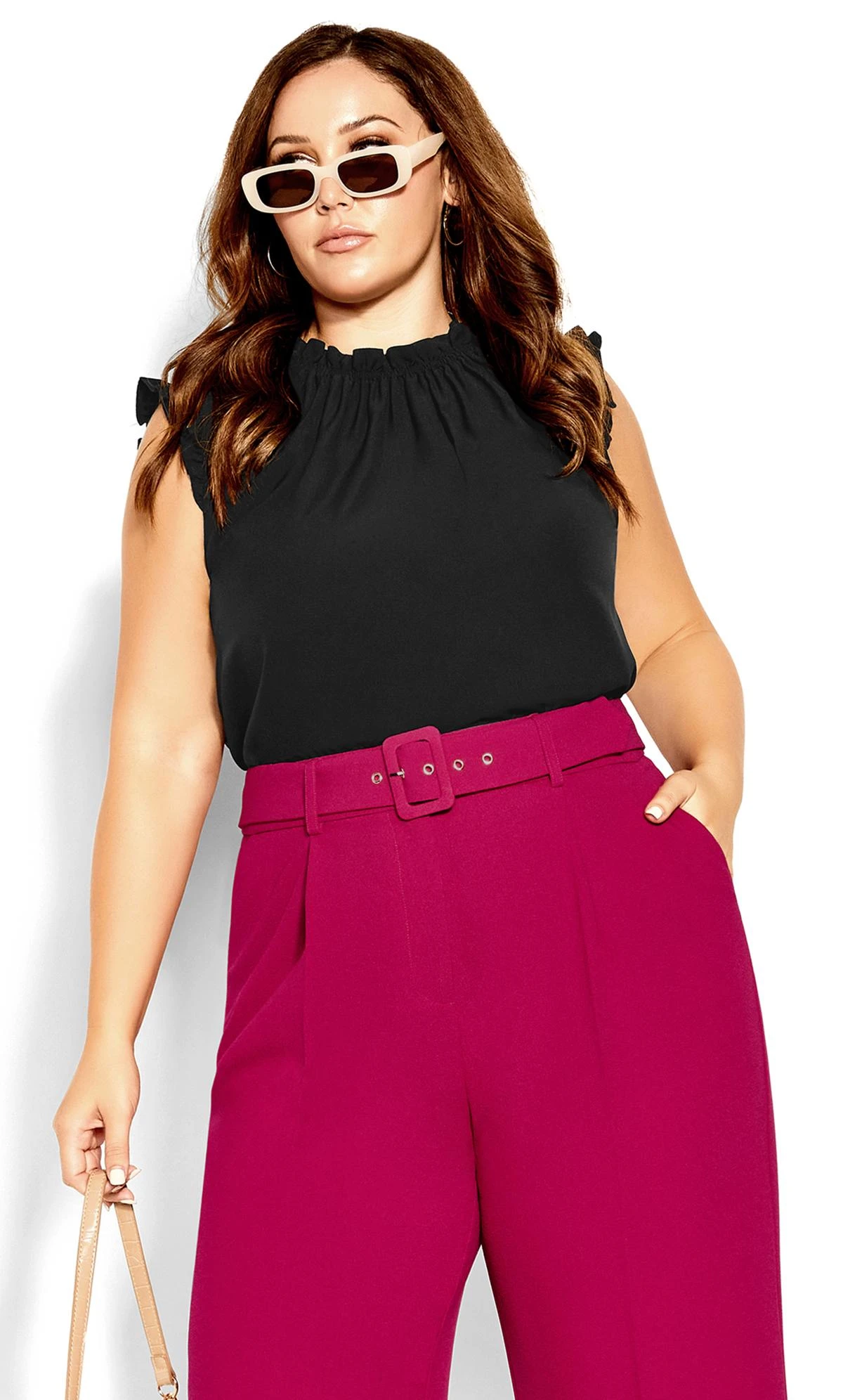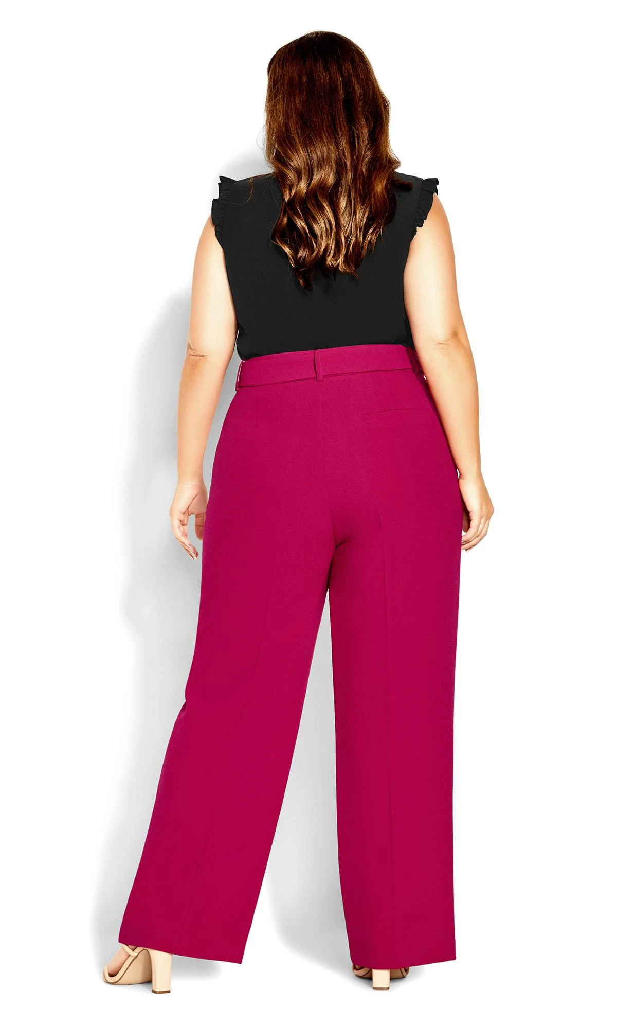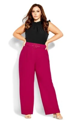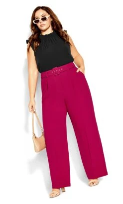 Discover elegance with the City Chic Pink Belted Wide Leg Trousers. Flaunting a flattering wide leg and included belt, these trousers effortlessly pair with a tucked-in blouse or fitted top for a stylish outfit.