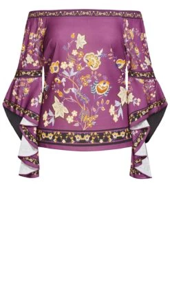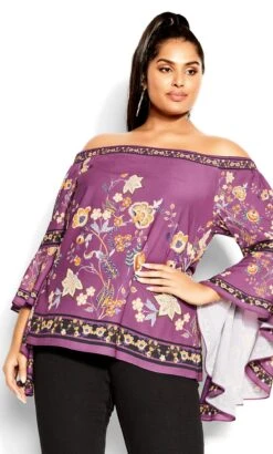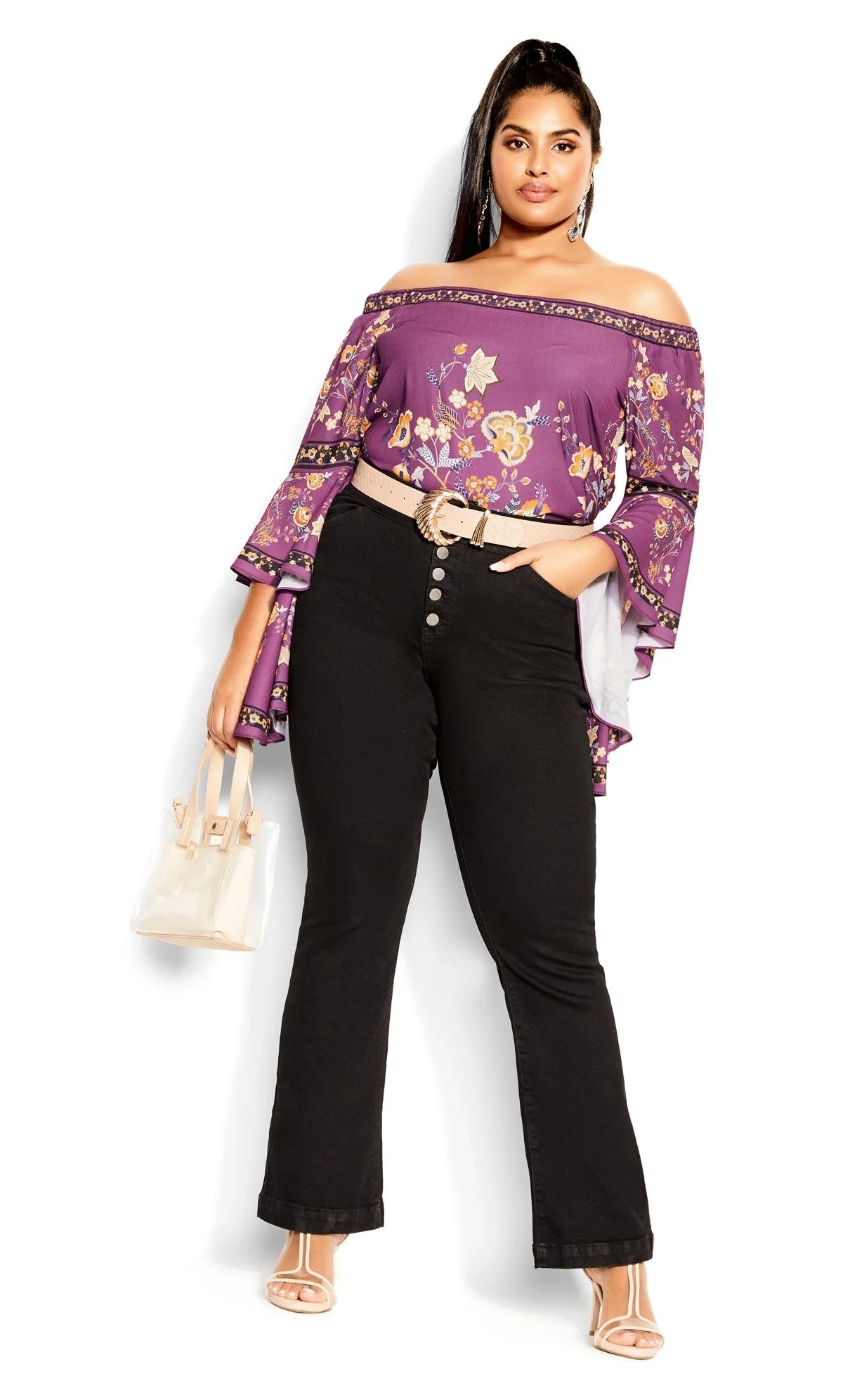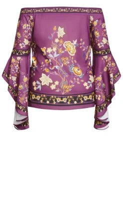 Master your off-duty style with the Cordelia Top. Fabulously feminine, this top flaunts an off-shoulder design, breezy yet dramatic flared ruffle sleeves and is finished with an elasticated straight neckline.