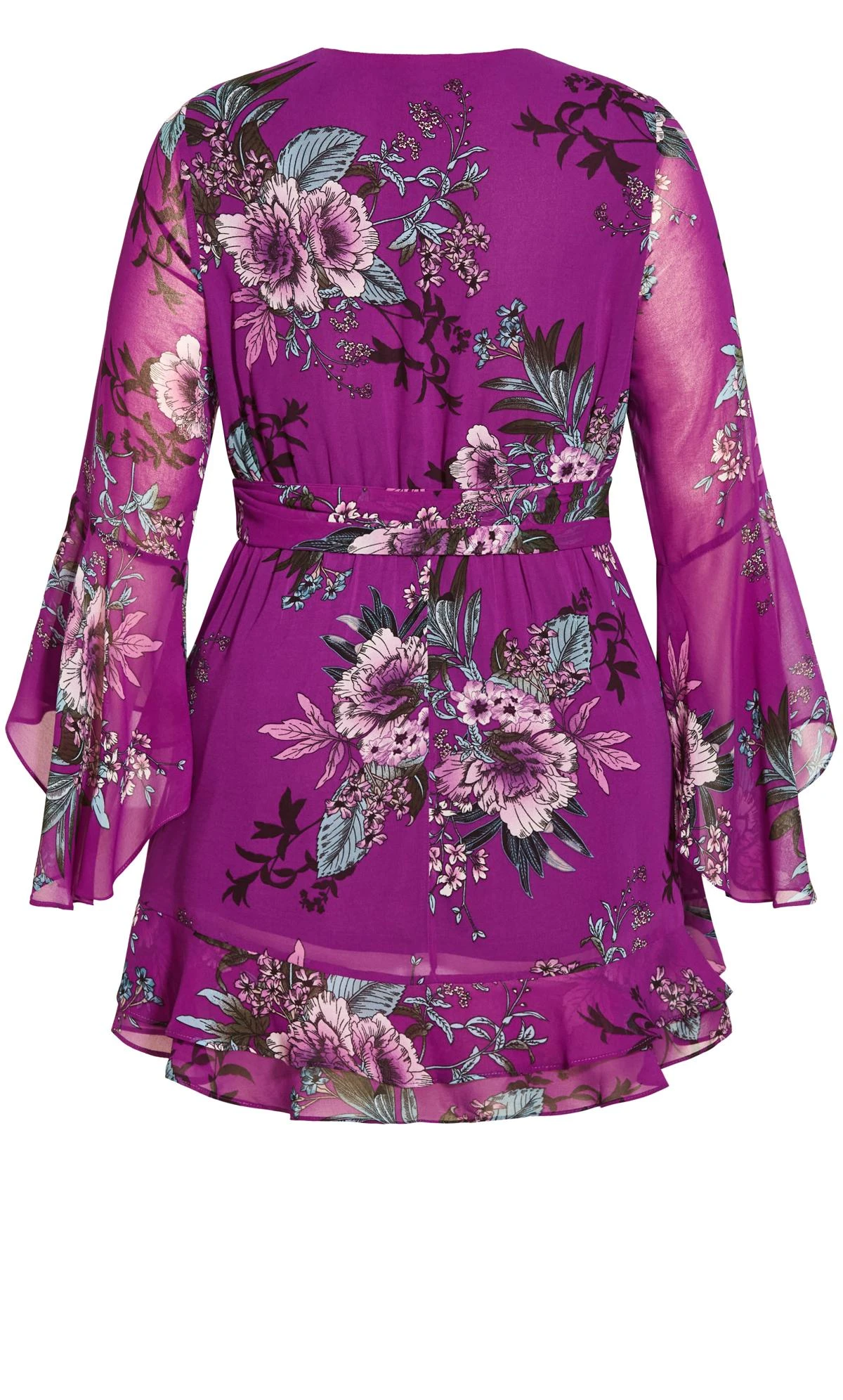 Melt hearts wherever you go in the flirty, feminine and floral printed Wild Flutter Dress! A boho-chic aesthetic meets glamorous touch, combining dramatic bell sleeves with a V-neckline and flattering tie waist.