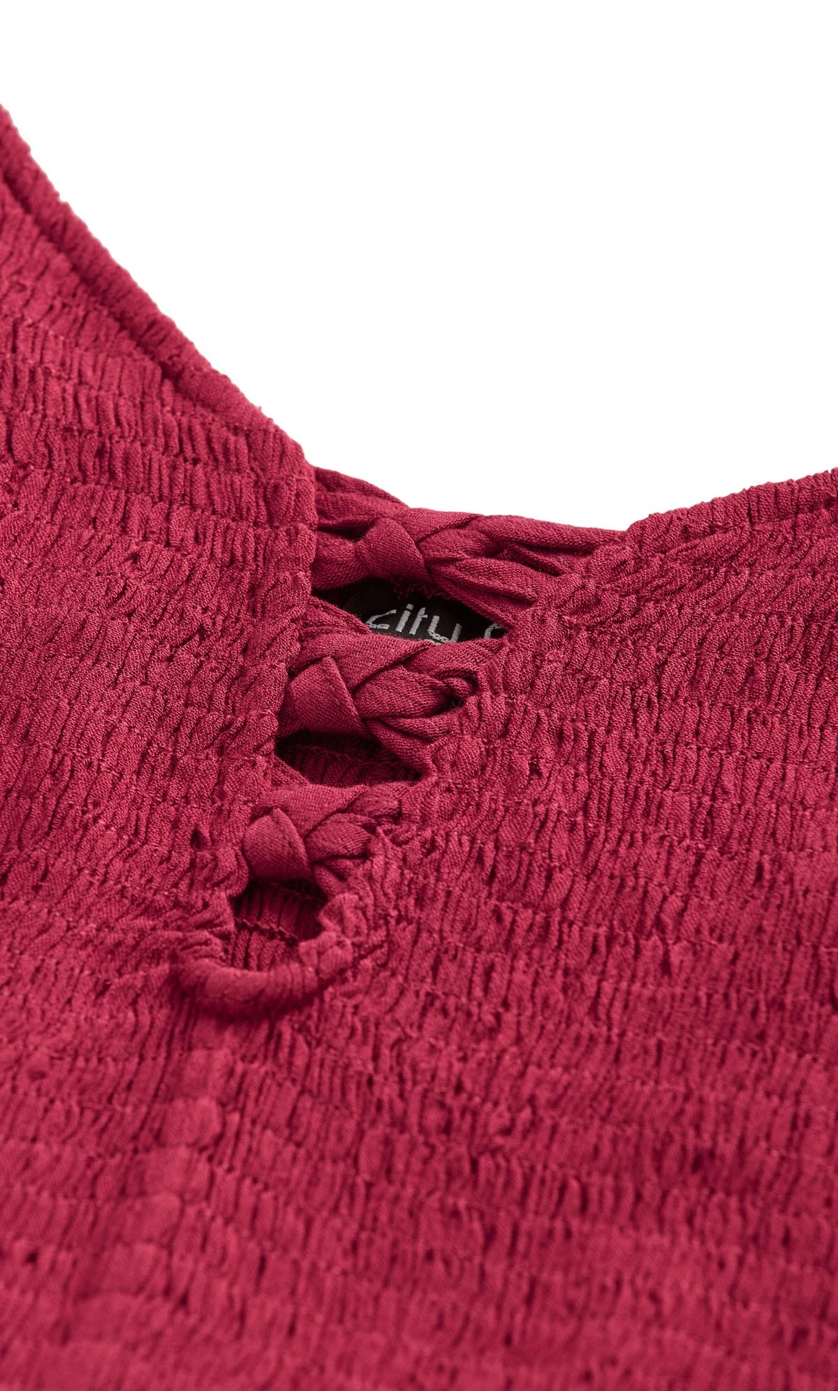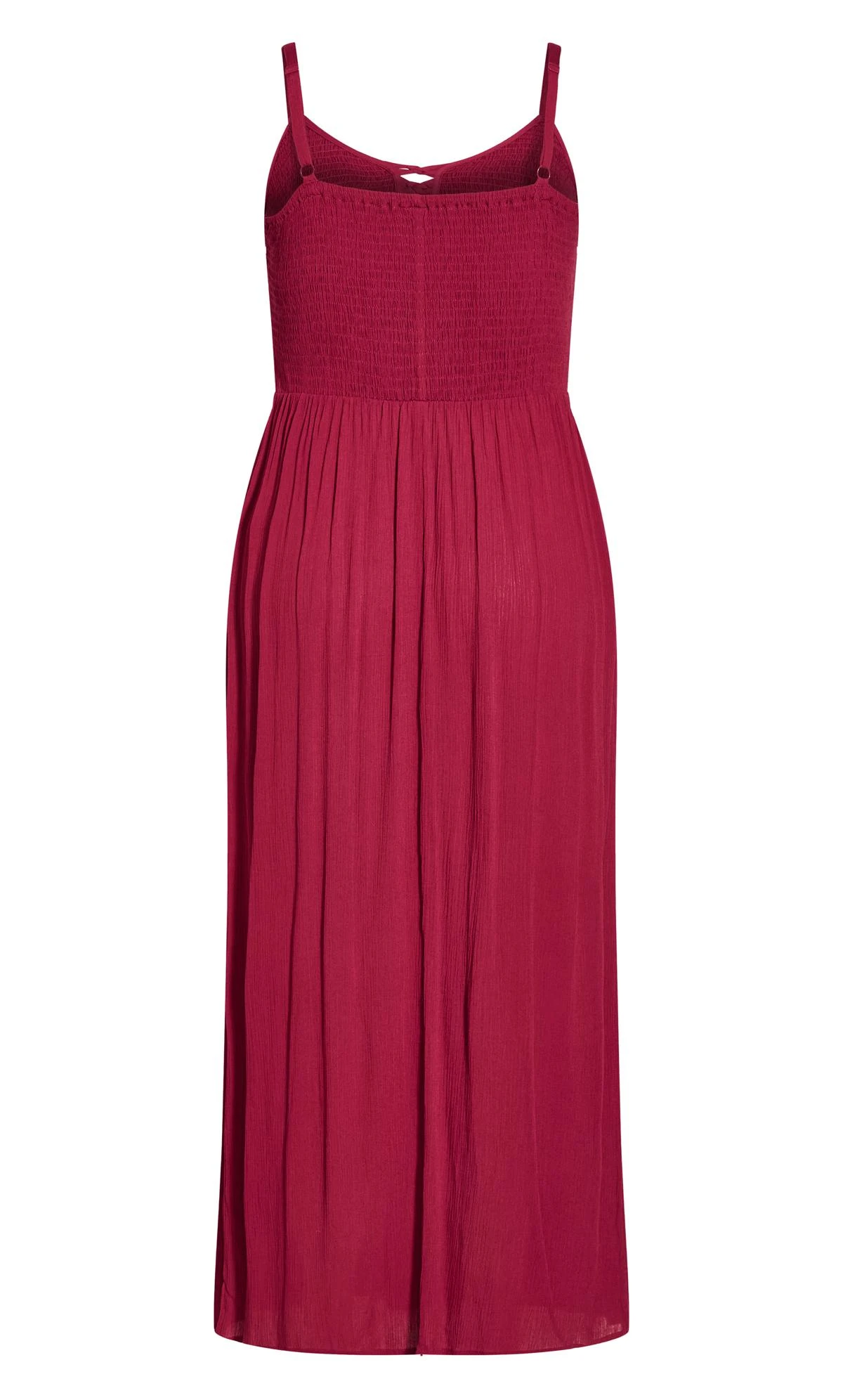 Channel blissful summer charm in the Riviera Maxi Dress! Featuring a bold rhubarb hue, caged neckline detail and flattering fit-and-flare shape, this maxi dress is a flawless go-to style.