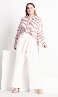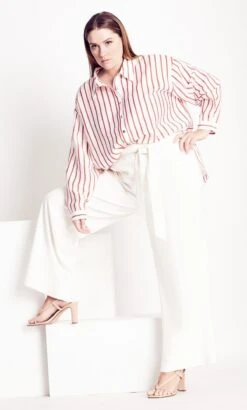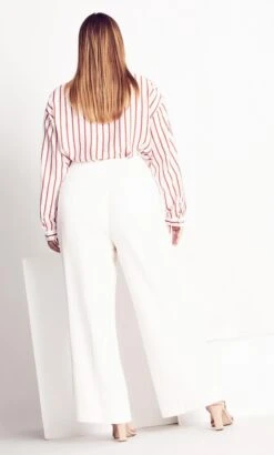 The Mod Palazzo Pant offers a curve-flattering silhouette with its high waist fit and fabulous flared leg. Complete with tie waist detail and a crisp white hue, you’ll be reaching for these trousers on repeat this season!