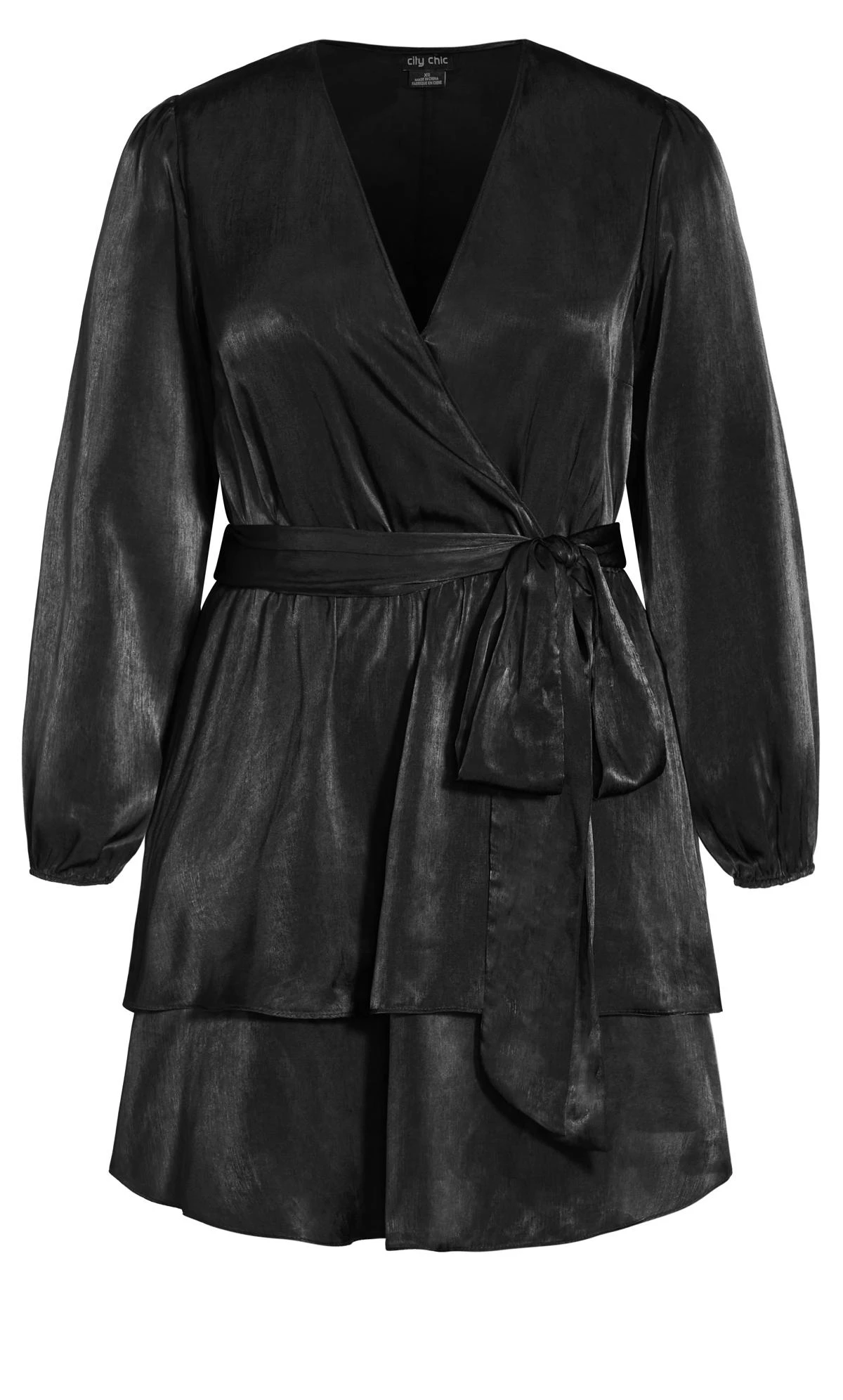 Step into sophistication with the City Chic Satin Black Wrap Tiered Dress. This elegant dress features a sleek black satin fabric and a tiered wrap design, combining luxury with contemporary style. Perfect for formal events or special occasions, pair it with statement heels and minimal jewelry to create a captivating ensemble that exudes confidence and grace, making you the center of attention wherever you go.