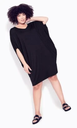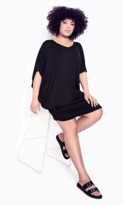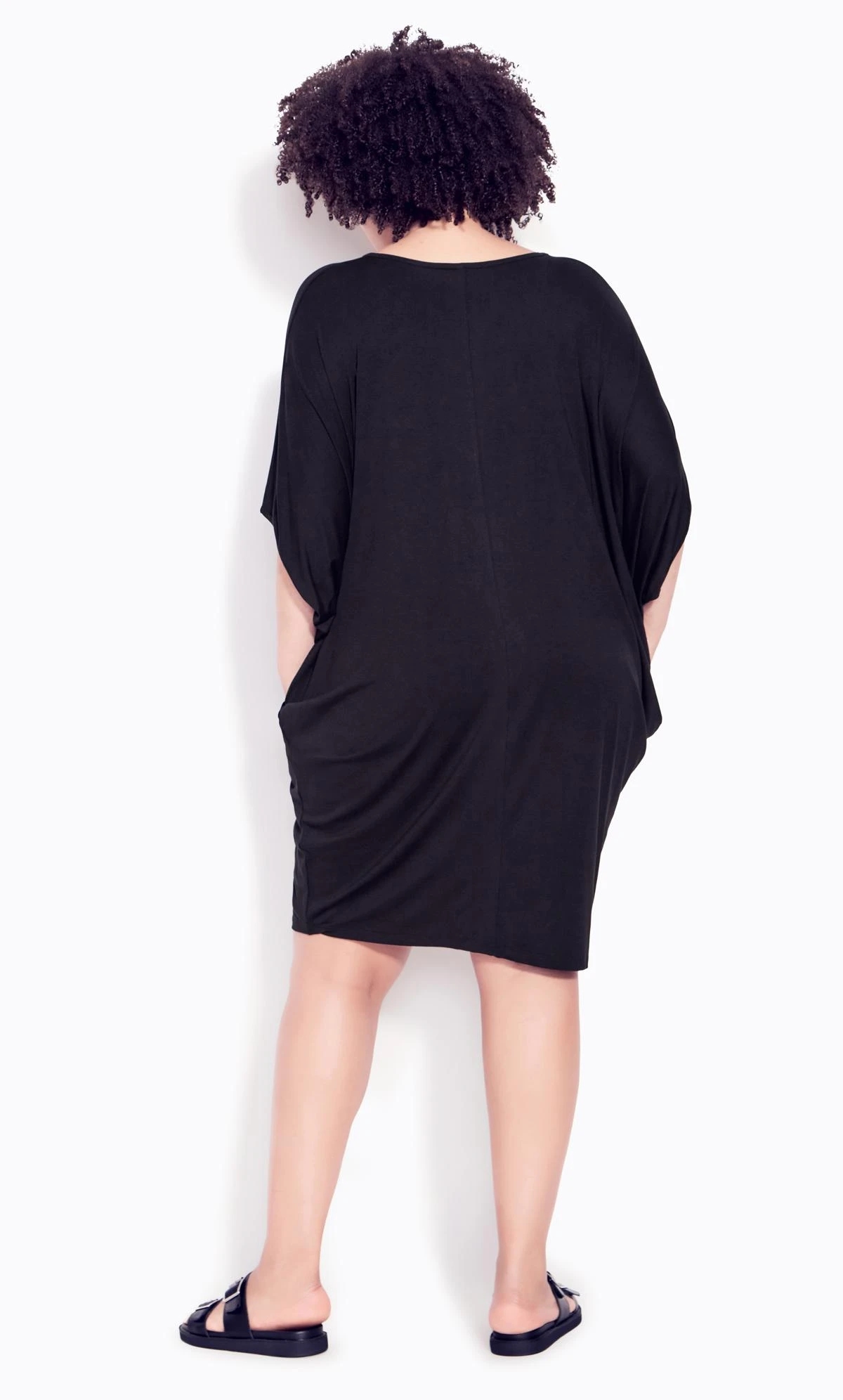 The trendy and comfortable Batwing Dress is perfect for any occasion! This mini dress features short batwing sleeves, a V-neckline, and a draping feature at the hips that flatters any figure.