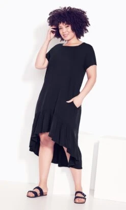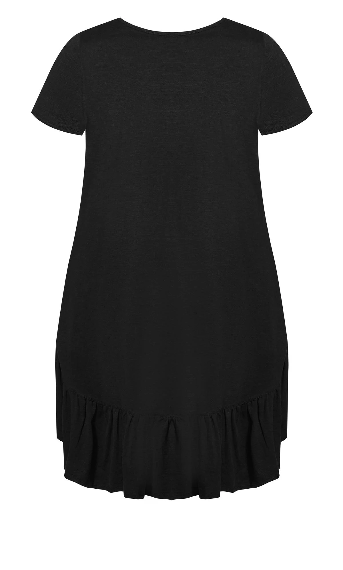 Master your effortless styling with the Ella Ruffle Plain Dress. This laidback look features a scoop neckline, short sleeves and sweet ruffle hemline.