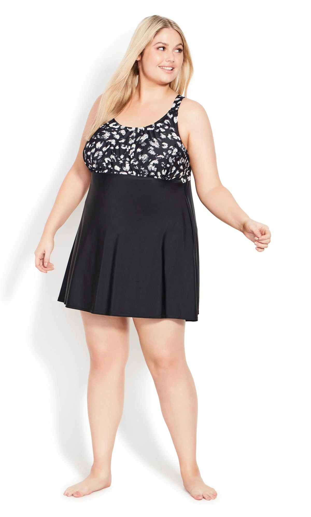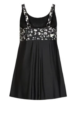 Embrace your wild side with Evans’ Black Animal Print Swimdress. The bold animal print pattern in classic black offers a touch of fierceness to your swimwear collection. With the comfort of a dress and the style of a swimsuit, this piece is perfect for a blend of fashion and coverage during your beach or poolside adventures.
