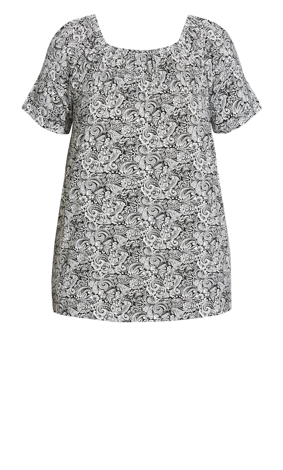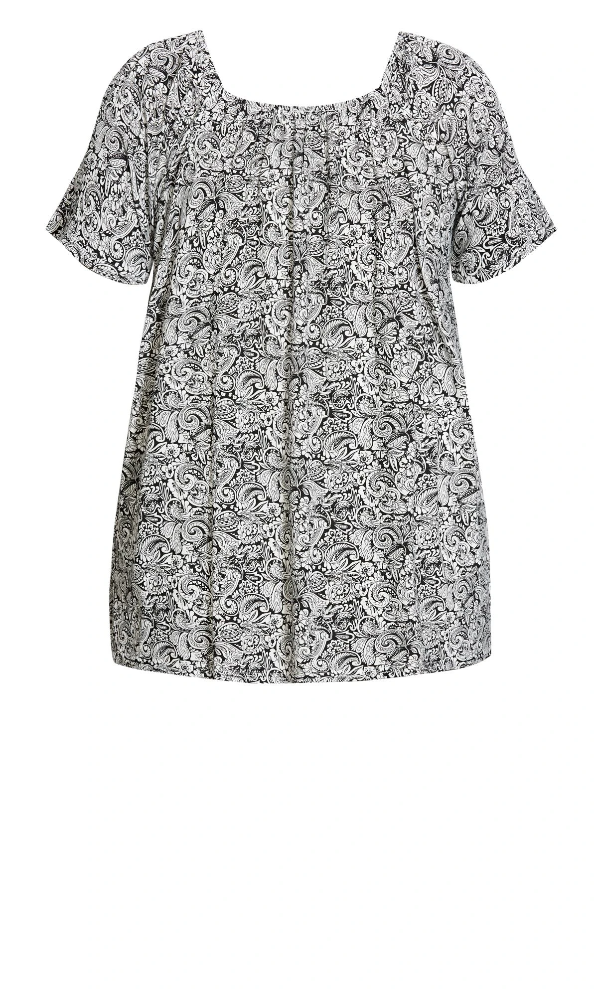 Striking in a black and white print, the Mono Paisley Top is a sure-fire wardrobe winner! Perfect for casual weekends, this versatile top features an elasticated neckline that can be worn on or off the shoulder and a comfortable relaxed fit.