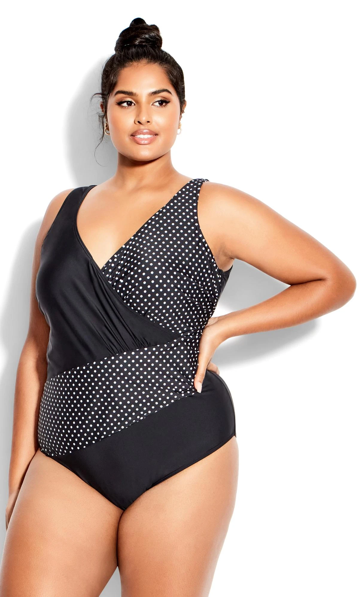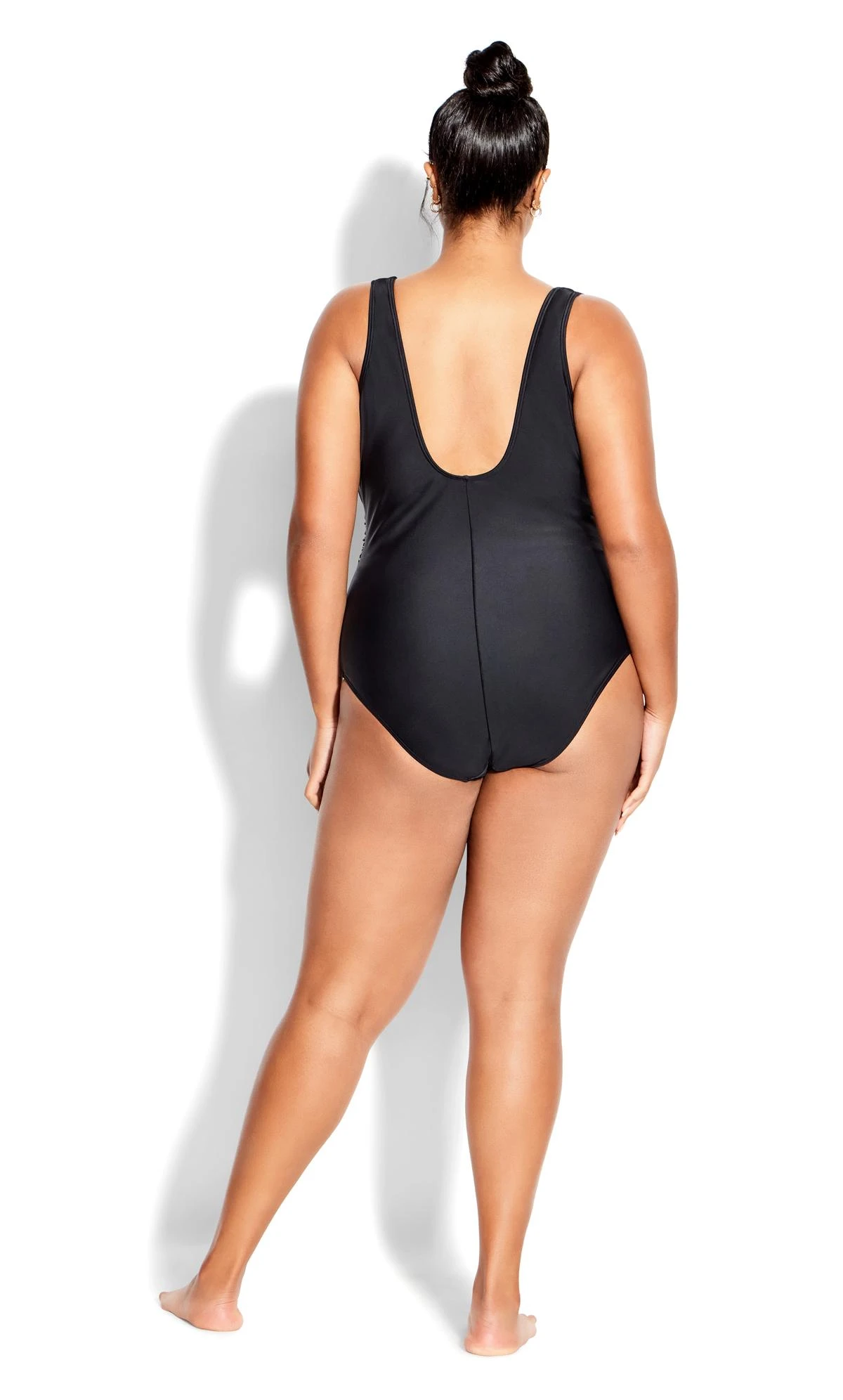 Embrace summer days with the stylishly supportive Spliced Print 1 Piece. The elasticated waistline hugs your figure flawlessly. Complete with a faux wrap V-neckline and close fit silhouette, this 1 piece will turn heads in the best way!