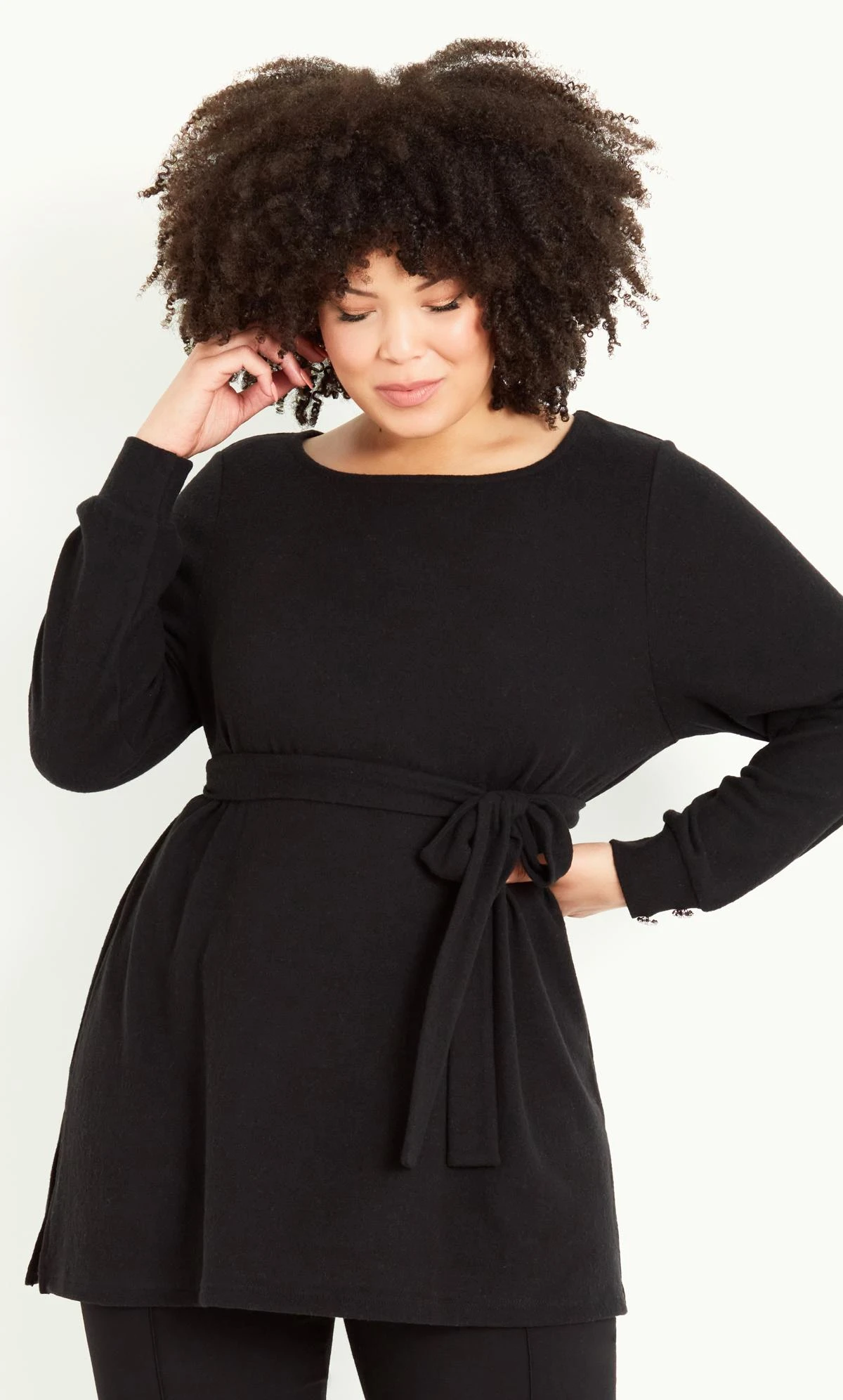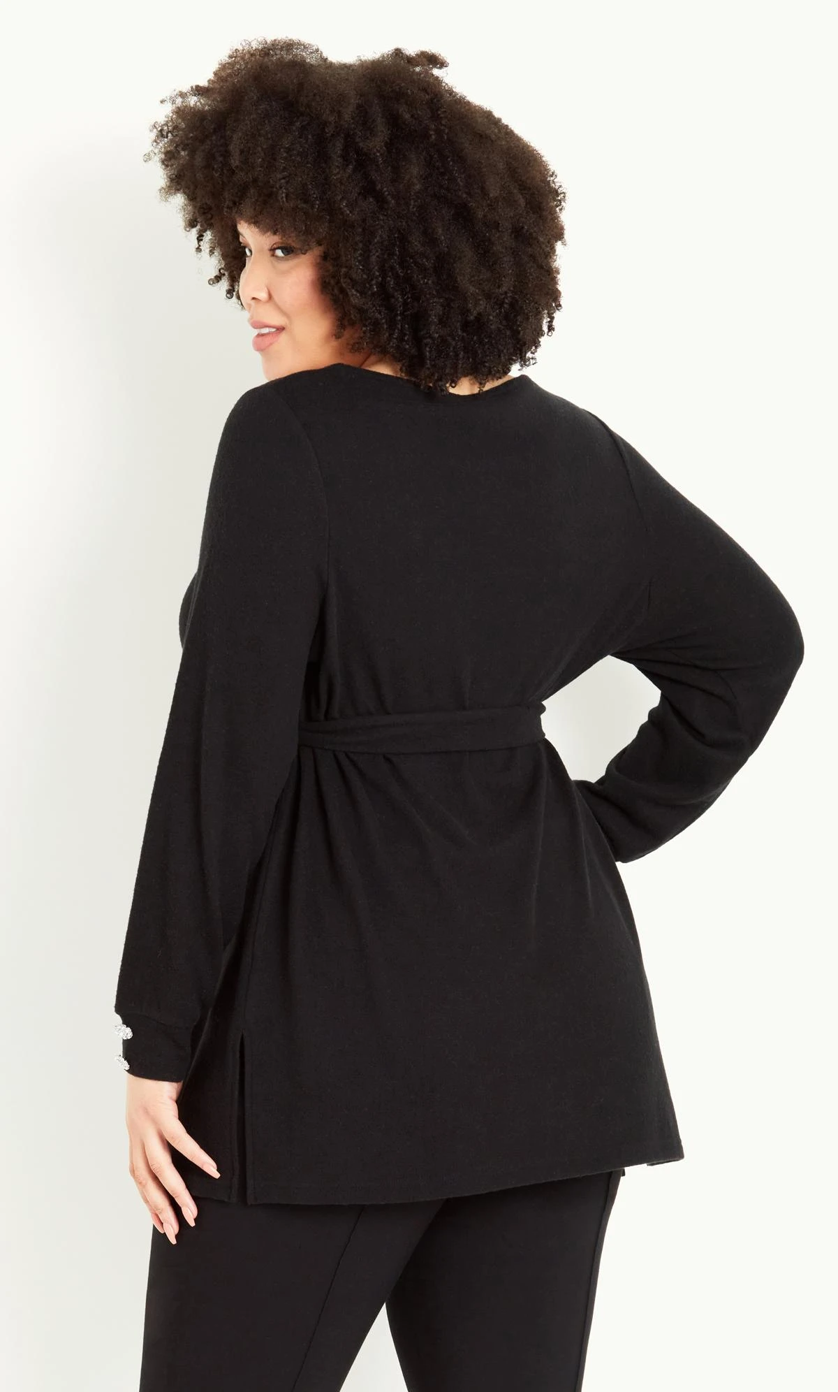Embrace your curves in the classic Button Top. Curve-loving and oh-so-soft, you’ll love the long sleeves with a bejewelled button cuff and a removable tie feature.