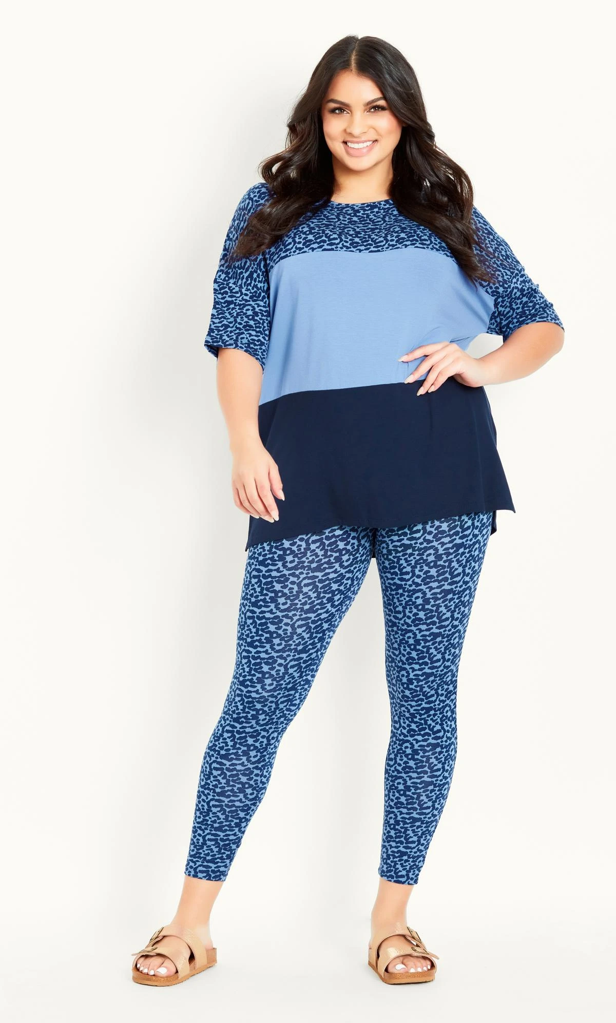 Create the perfect comfort look in leggings and slides.