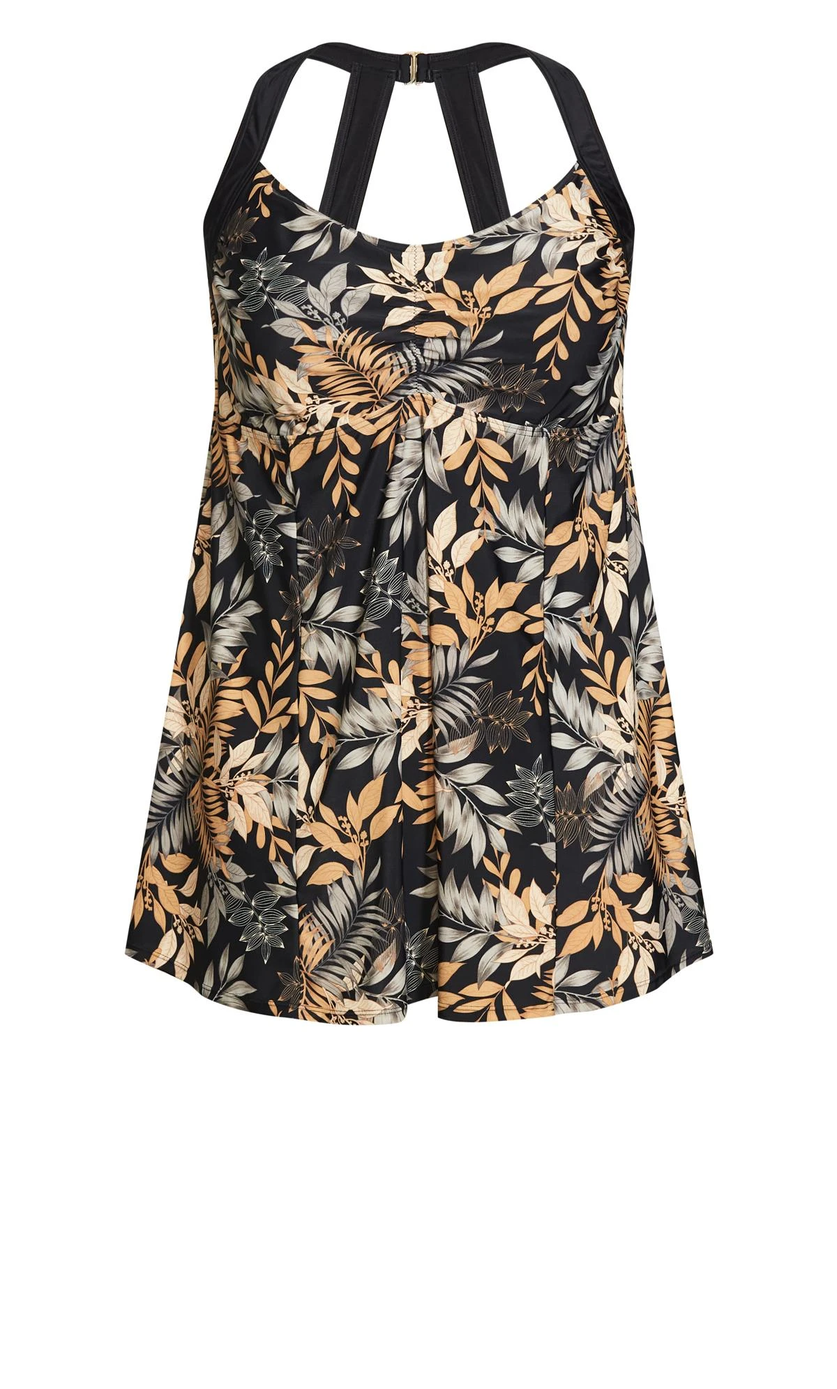 – Full brief style with flared dress overlay