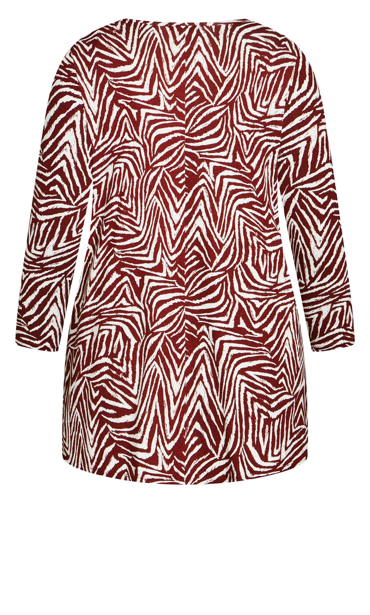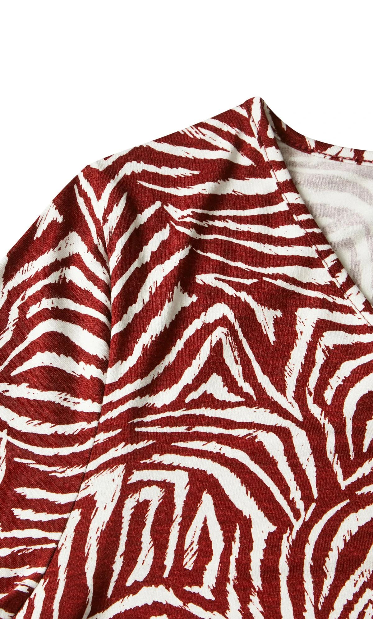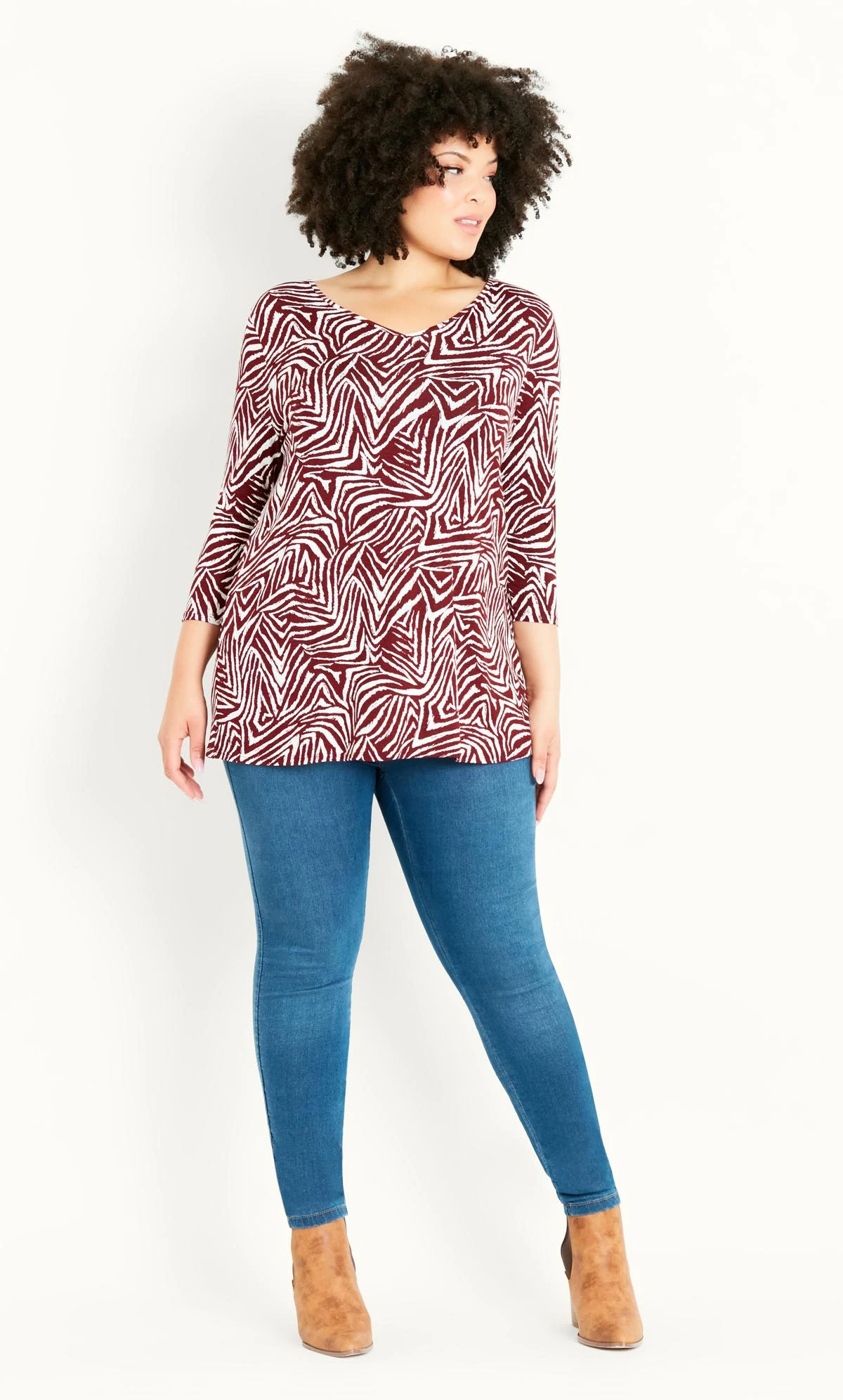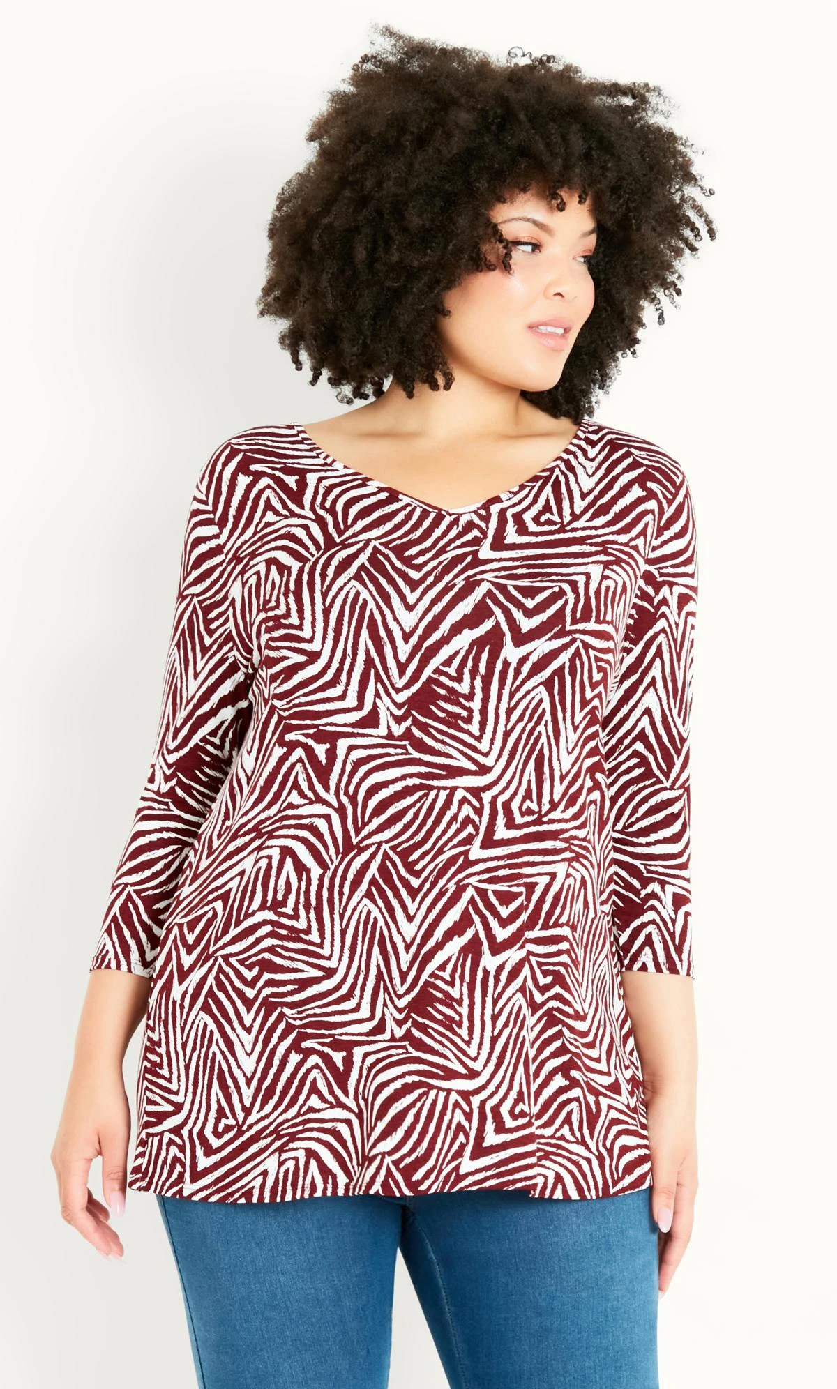 Designed to keep you comfortable, go from day to night in the Printed 3/4 Sleeve Tee. In a gorgeous red hue, embrace the v-neckline and 3/4 sleeves.