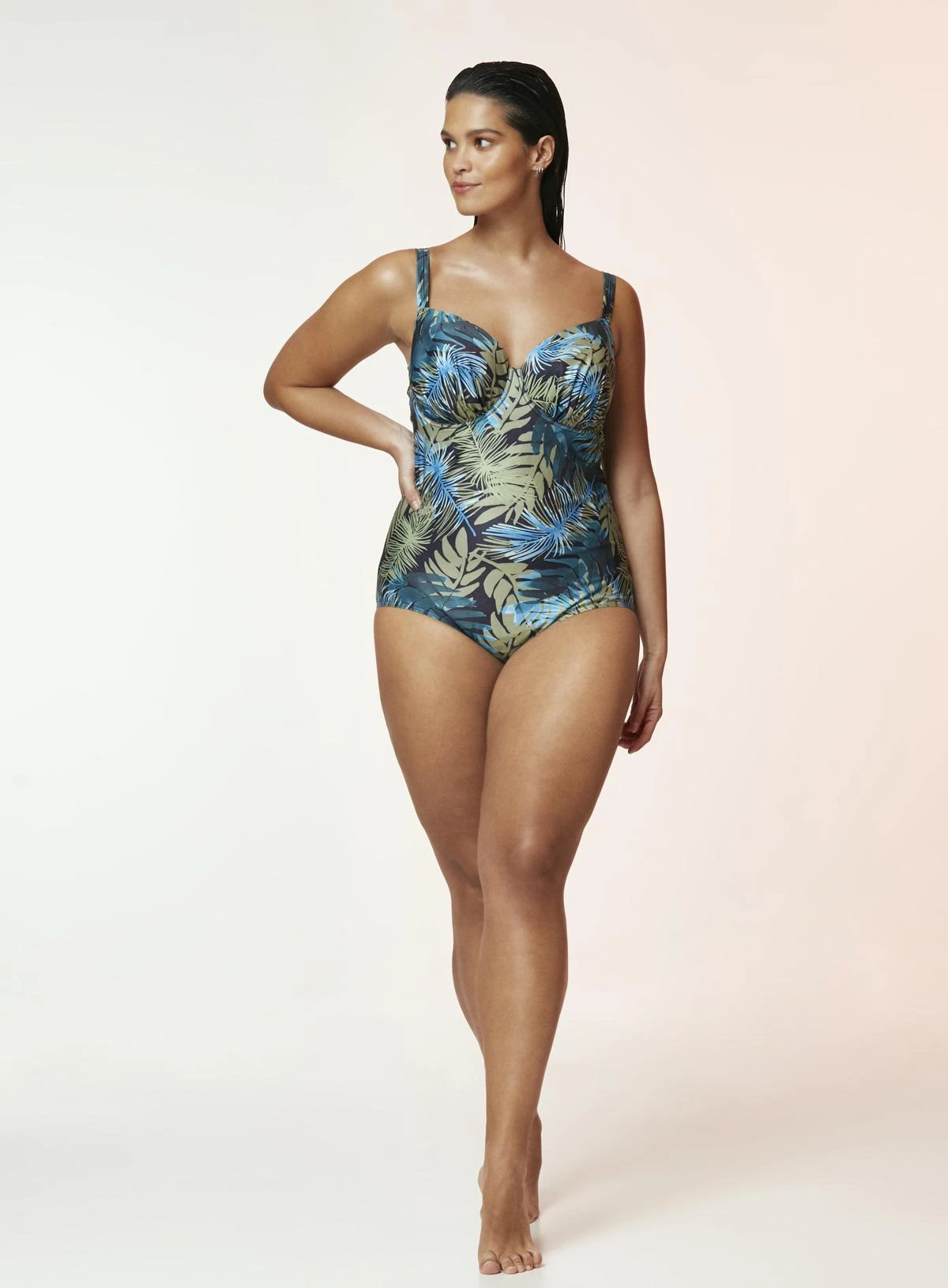 For a relaxing day at the resort, style this swimsuit with a high split skirt and strappy sandals.