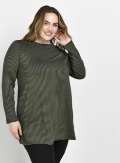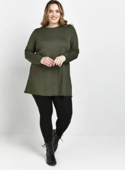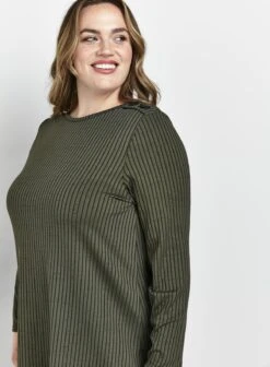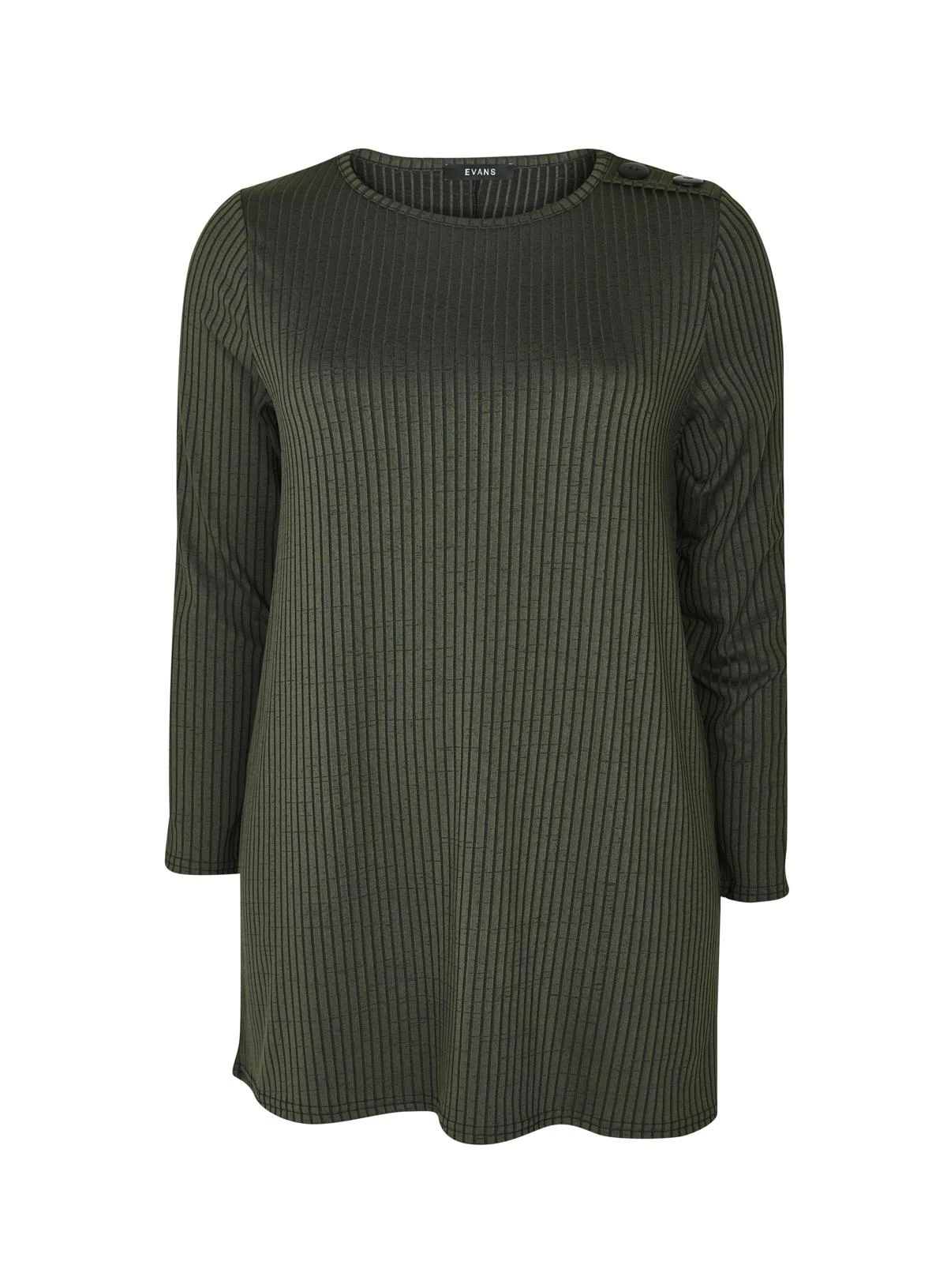 Upgrade your knitwear collection with the Ribbed Button Detail Top! A khaki ribbed finish keeps this contemporary, whilst a relaxed fit and long sleeve design makes it the perfect top for your everyday wardrobe.