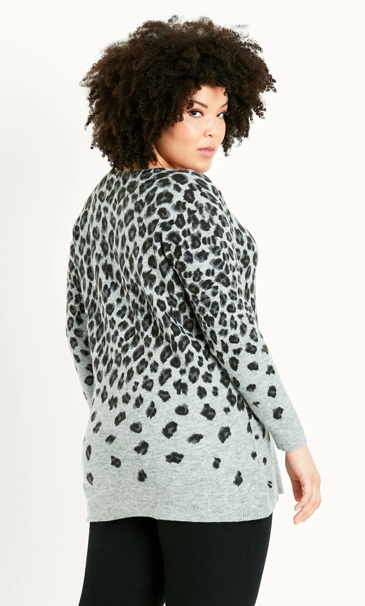 Go for a laidback look in our Animal Print Jumper. In a grey hue, the relaxed fit complements your curves while the all-over animal print steal the show.