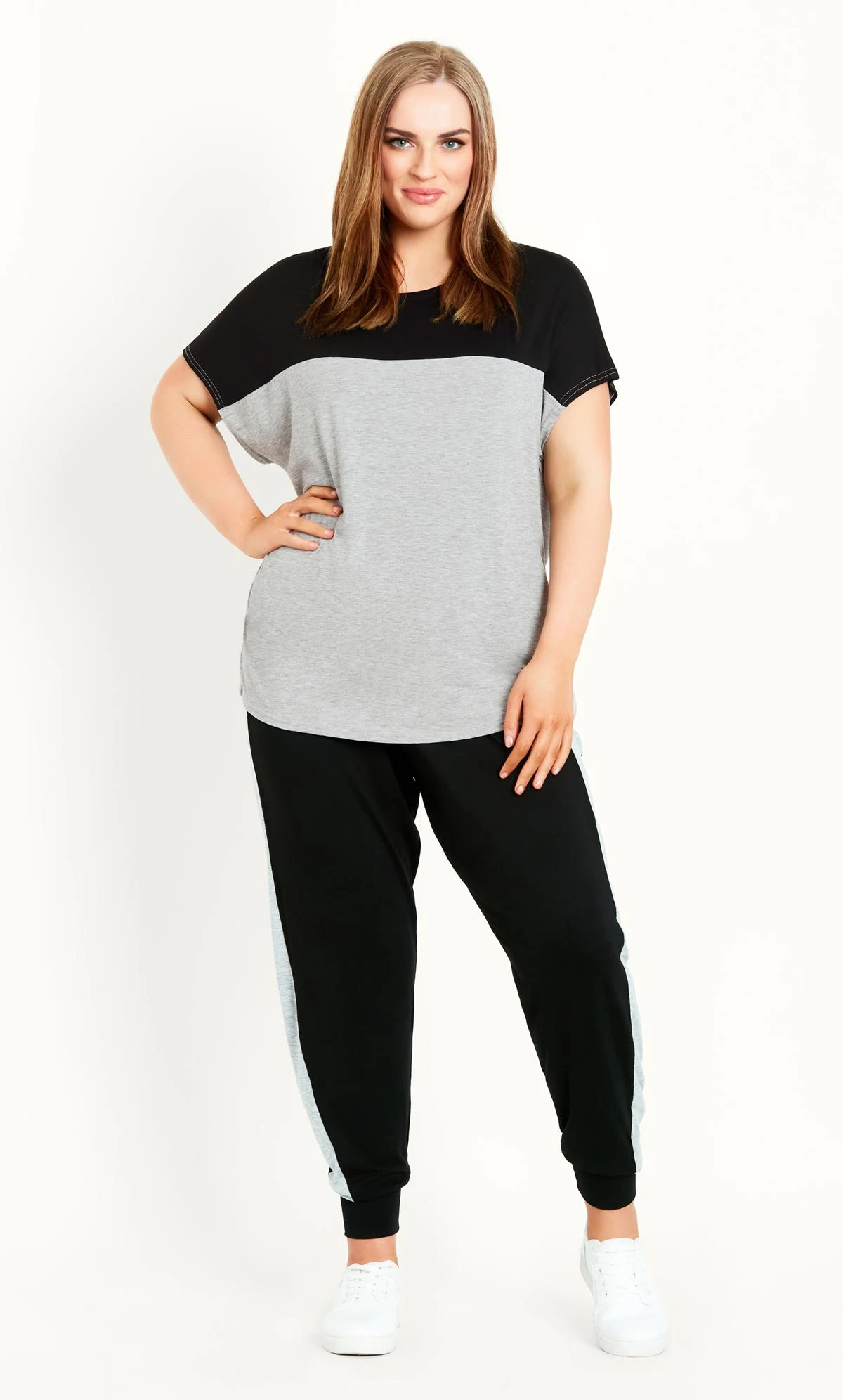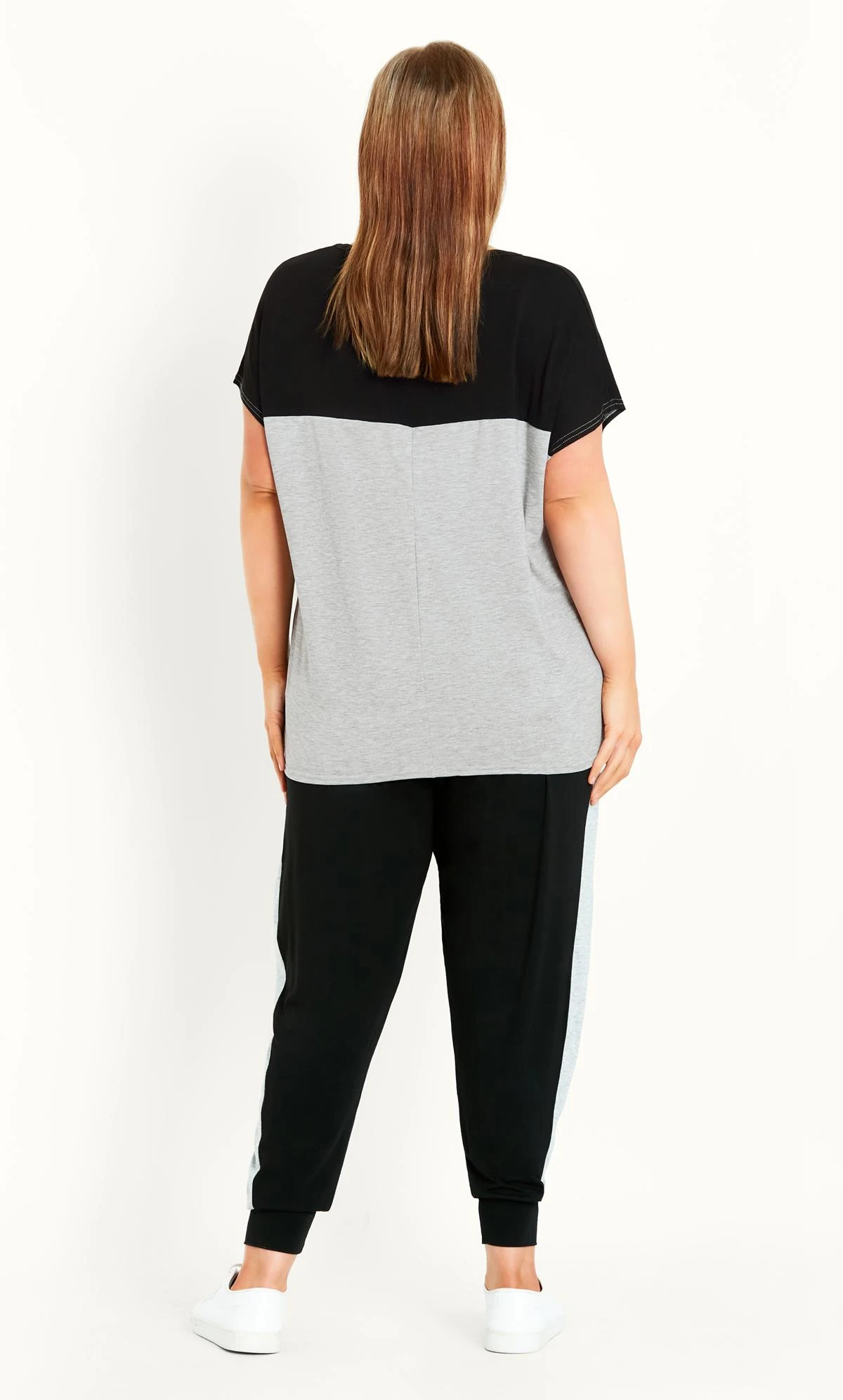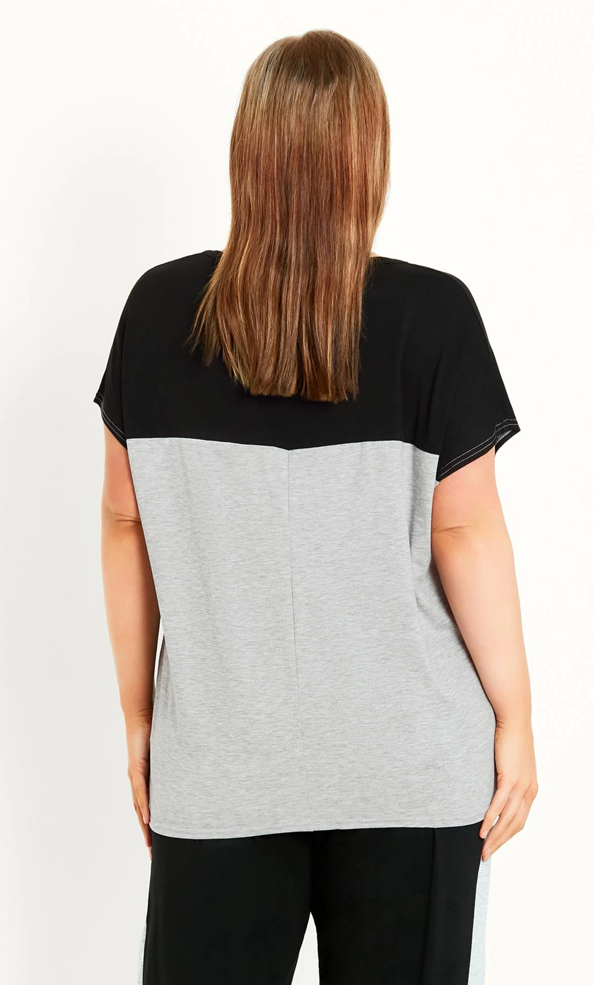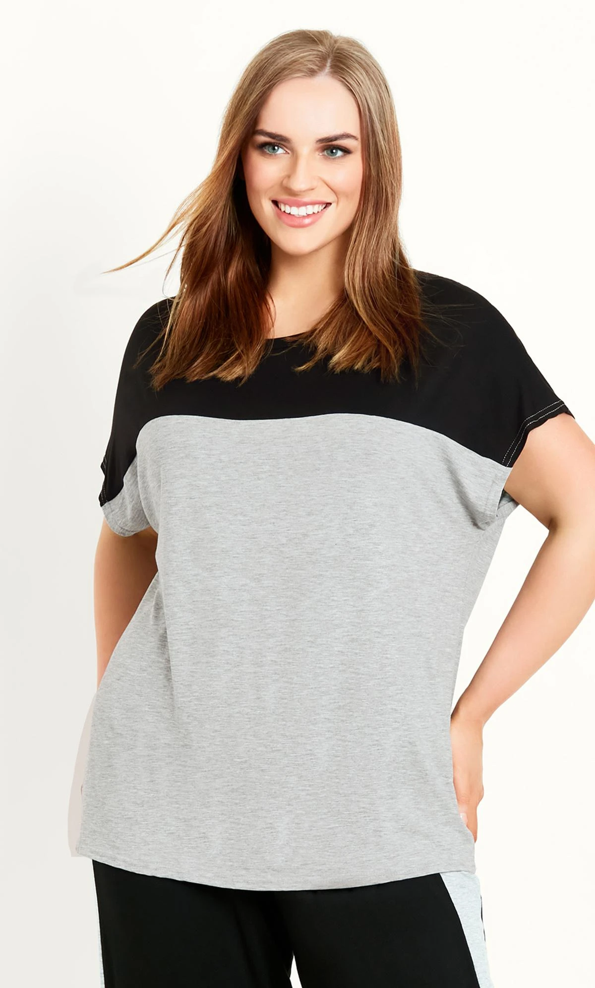 Enjoy a laidback look with the grey Colour Block Short Sleeve Top. Complete with a relaxed fit and soft stretch fabrication, feel comfortable all day long in this must-have top.