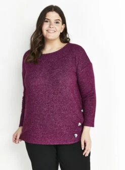 Elevate your wardrobe with the Evans Purple Button Detail Long Sleeve Top. The rich purple hue and thoughtful button accents enhance its elegant appeal. With its long sleeves, this top is perfect for transitioning between seasons and can be effortlessly paired with jeans or trousers for a versatile and stylish outfit.