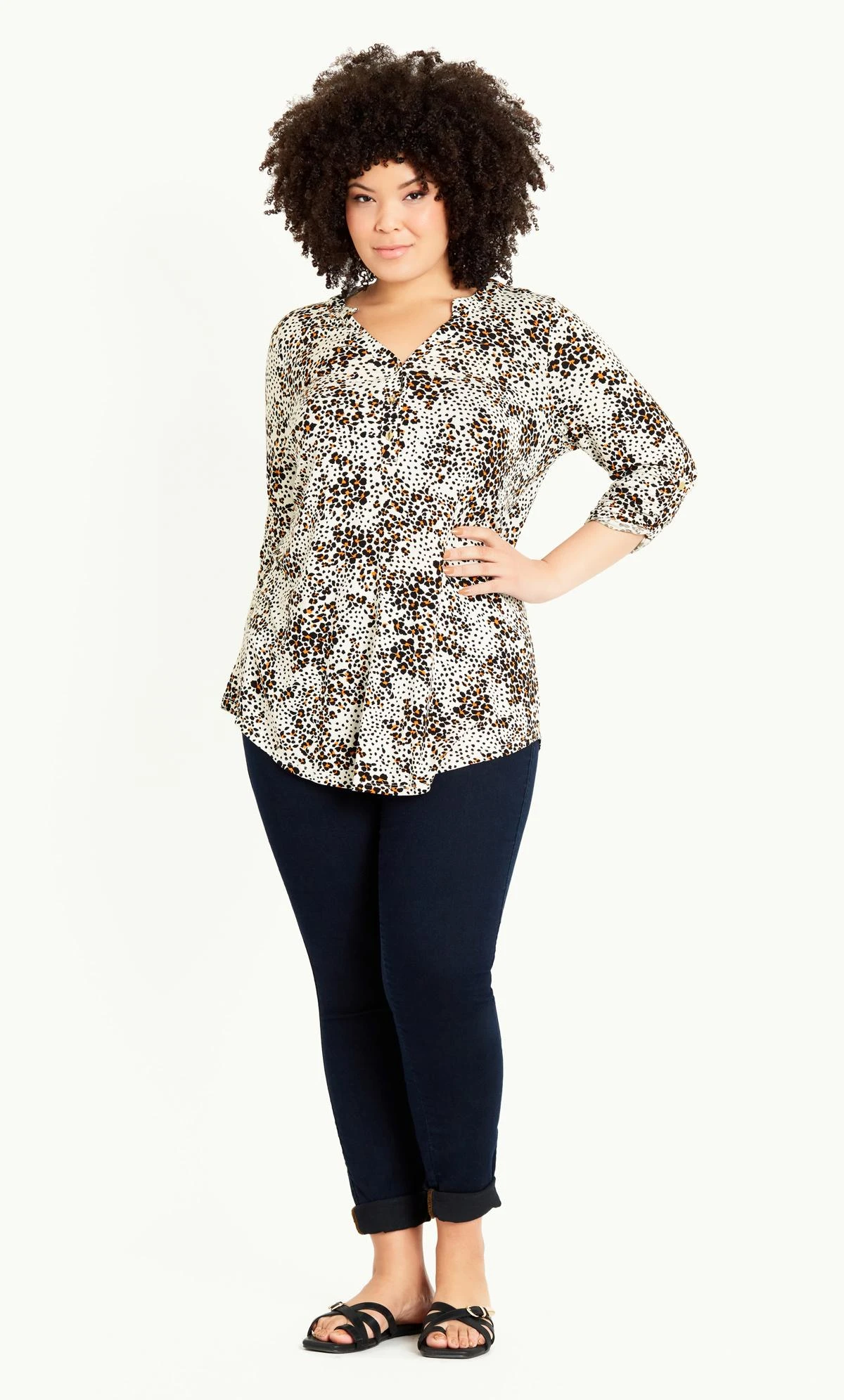 Sashay into new season style with the breezy, chic and comfortable Animal Jersey Shirt. Serving up an eye-catching Animal print and soft stretch fabrication, you’ll never want to take this fabulous top off!